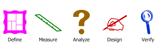 - DMADV ( /ˈdə.ˈmæd.vi/, "더-매드-비"): 신제품 또는 프로세스 설계를 만드는 것을 목표로 하는 프로젝트에 사용된다. DFSS("'''D'''esign '''F'''or '''S'''ix '''S'''igma"")라고도 한다.