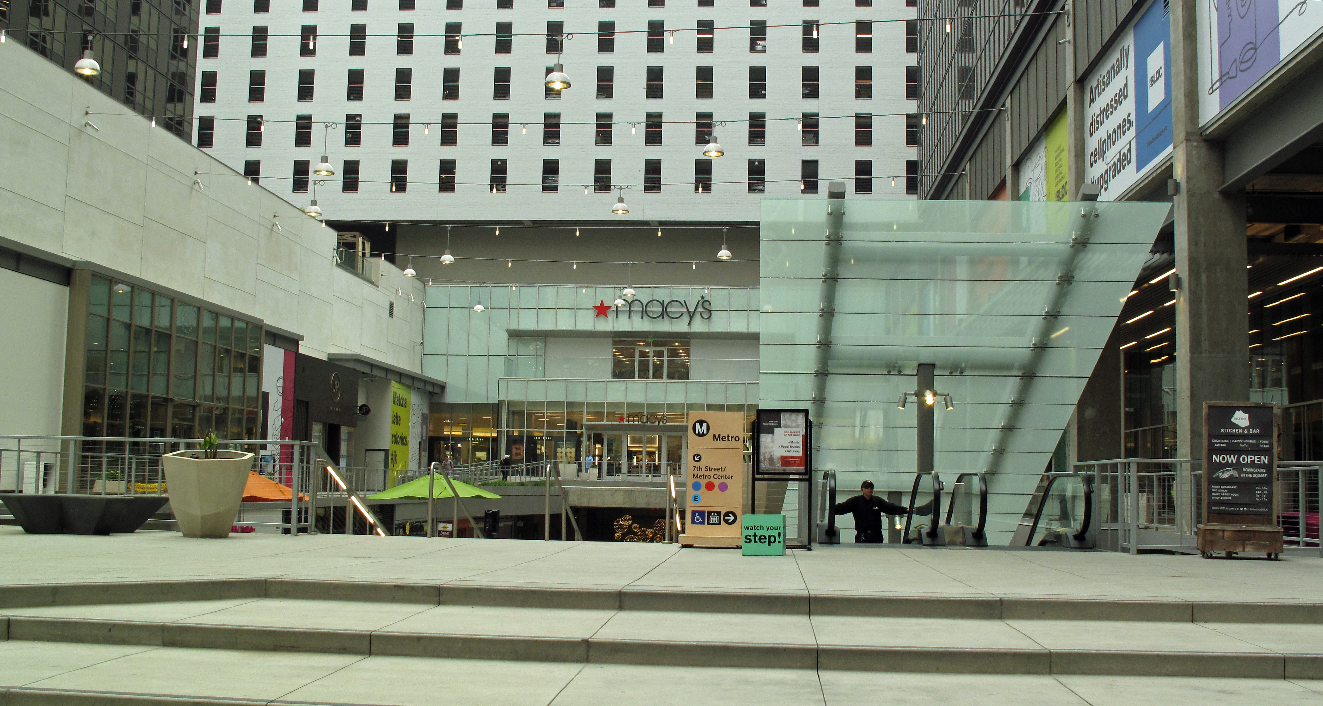 남부 캘리포니아 급행 수송 지구가 오늘날 LA 메트로의 일부가 된 7번가/메트로센터역을 건설했으며, 이는 메트로 레일 지하철(현재 B선)의 첫 번째 약 7.24km '최소 운영 구간'(MOS-1)의 일부였다. 1986년 9월 29일에 이 프로젝트의 기공식이 열렸다.[4]