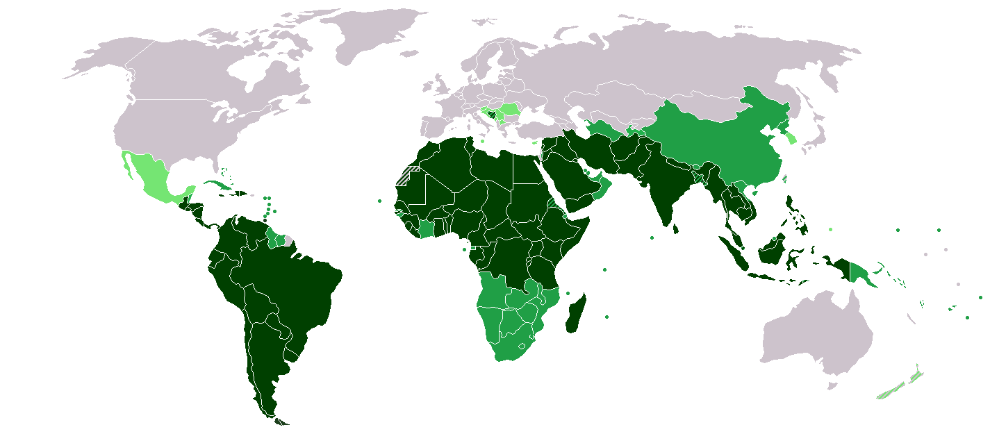 대한민국, 멕시코는 OECD 가입으로, 키프로스, 몰타, 루마니아는 EU 가입으로, 유고슬라비아는 국가 분열 후, 팔라우는 환경 정책 추구를 이유로 77 그룹에서 탈퇴했다.[26] 아시아, 아프리카, 라틴아메리카, 오세아니아의 대부분의 개발도상국은 지역, 이념, 빈부, 문화적 차이에 관계없이 77 그룹에 가입하여 회원국 수가 확대되었다.중국은 회원국으로 명시되지만,[41] 스스로 회원국으로 간주하지 않고 '77개 그룹과 중국(G77+중국)'으로 공식 성명을 발표한다.[43]