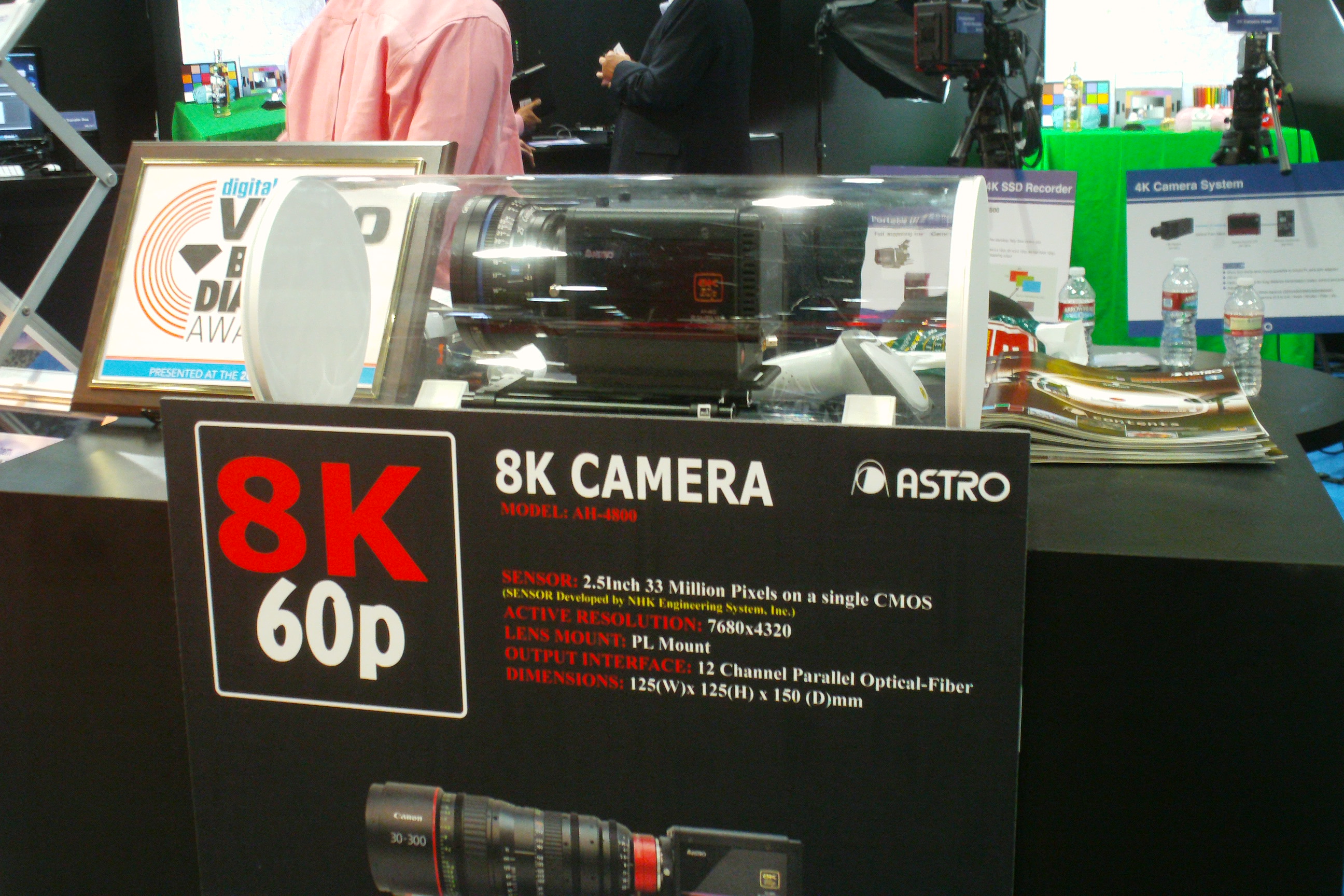 2013년에는 AstroDesign 사가 8K 카메라를 발표하고 NAB 쇼에서 시연했으며, NHK와 히타치도 8K 카메라를 선보였다. 이후 8K 기술은 주요 국제 행사에서 시연되기 시작했다. 소치에서 열린 2014년 동계 올림픽과 브라질에서 열린 2014년 FIFA 월드컵에서는 HEVC 코덱을 이용한 8K 영상이 공개 상영되었다.[13][14][15] NHK는 월드컵 일본 경기를 8K로 촬영하기도 했다.