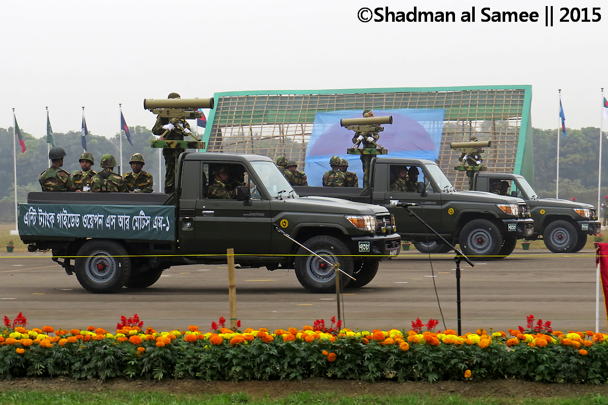 방글라데시 | 2013년에 1200발의 미사일과 함께 메티스-M1 시스템이 공급되었다.[19][20][21][22] 방글라데시 육군은 메티스-M1의 가장 큰 사용자 중 하나이다. ![]() |