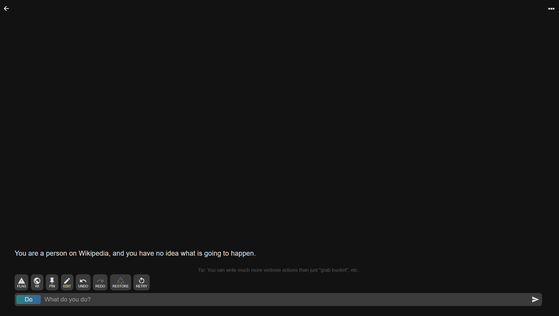 AI 던전은 인공지능을 사용하여 플레이어가 제출한 자극에 반응하여 무작위 스토리라인을 생성하는 텍스트 어드벤처 게임이다.[1][2][3][4]모험을 시작한 후, 플레이어는 텍스트 입력을 위해 다음과 같은 네 가지 주요 상호 작용 방법을 선택할 수 있다.[14]
