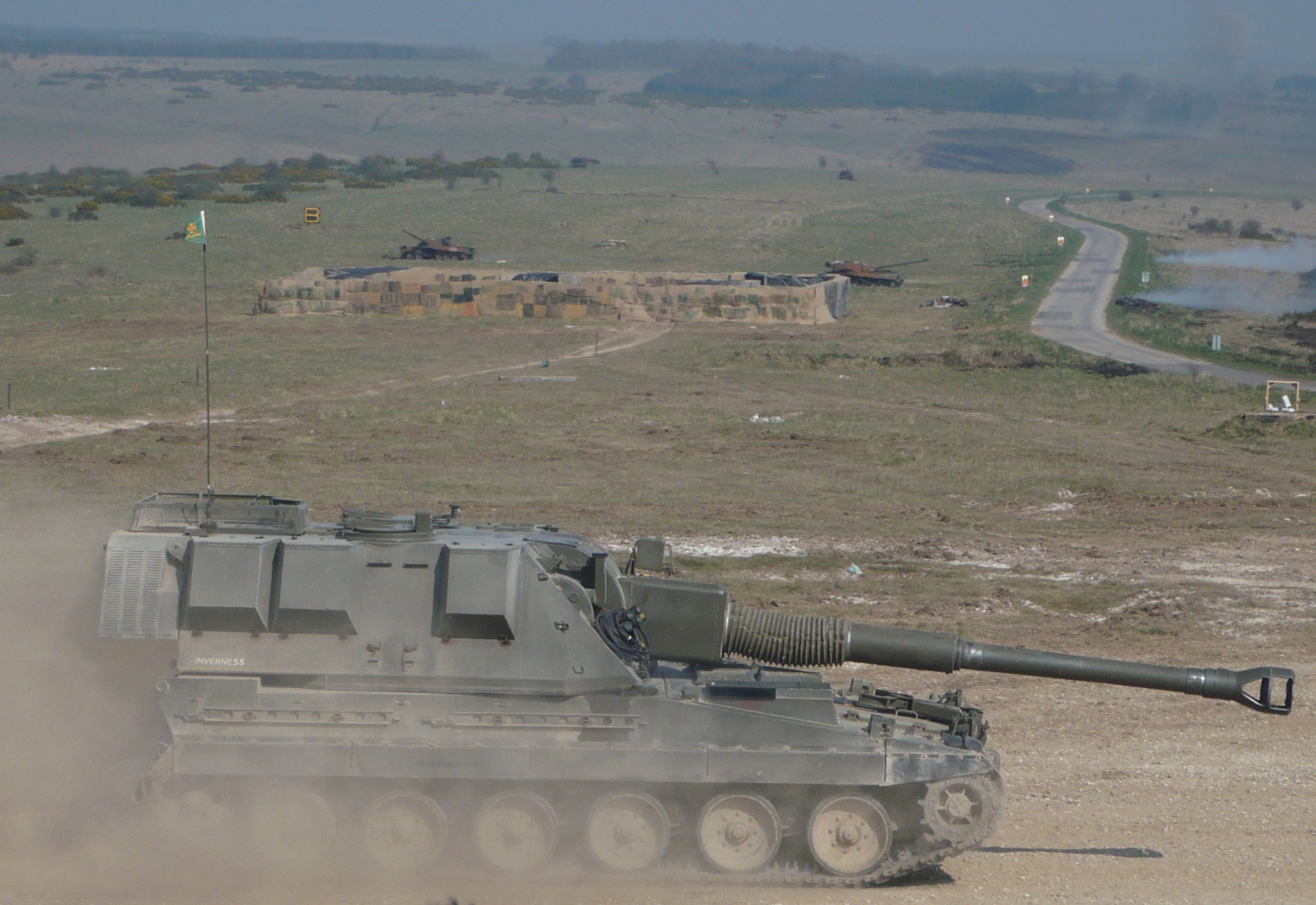 1970년대부터 영국은 독일 (구 서독)과 이탈리아와 공동으로 M109 155mm 자주 곡사포의 후계인 155mm 자주 곡사포 '''SP-70'''을 개발했지만, 여러 문제로 인해 1986년에 개발이 중단되었다.