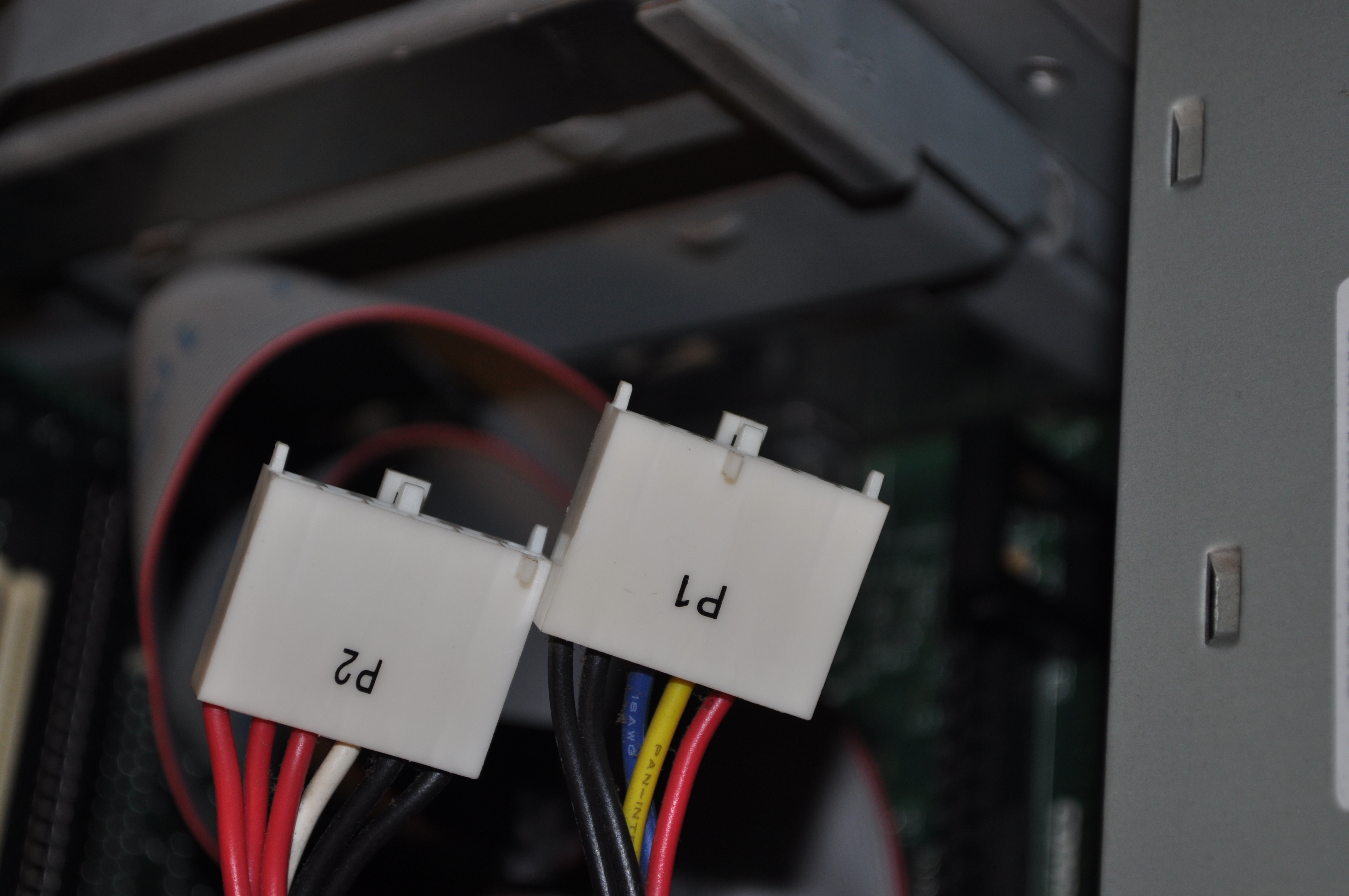 AT 마더보드 전원 커넥터는 P8과 P9라고 불리는 두 개의 비슷한 6핀 플러그와 소켓으로 구성된다. IBM은 커넥터가 올바른 위치에만 삽입되도록 기계적으로 키잉하여 설계했다. 그러나 일부 복제품 제조사들은 비용을 절감하기 위해 키가 없는 커넥터를 사용하기도 했다. 이 때문에 사용자들이 커넥터를 잘못 연결하여 보드가 손상되는 경우가 자주 발생하였다.[1] 올바르게 연결하려면 각 커넥터의 검은색 전선 두 개가 서로 인접해야 한다. 즉, 총 12개의 검은색 전선 중 4개가 연속으로 배열되어야 한다. 기술자들은 "중앙에 검은색 전선을 함께"와 같은 기억술을 사용해 올바른 설치를 돕기도 했다.[1]