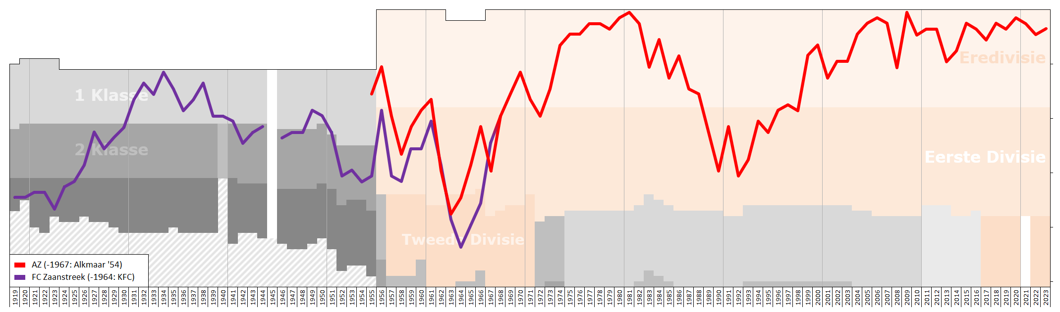 1964년, 세스 몰레나르와 클라스 몰레나르 형제는 지역의 두 프로 팀인 KFC와 잔란츠셔 축구 클럽을 합병하여 잔스트레크에 강력한 축구 팀을 만들려고 시도했다. ZFC 지도부가 이 시도를 좌절시킨 후, 몰레나르 형제는 1967년에 FC 잔스트레크와 알크마르 '54를 성공적으로 합병했다. FC 잔스트레크는 1966–67 에이르스터 디비시에서 7위, 알크마르 '54는 12위를 기록했다. 팀은 알크마르에 기반을 두게 되었지만, 두 번째 팀은 원래 코흐 안 데 잔에서 훈련하고 경기를 했다.[1][4]