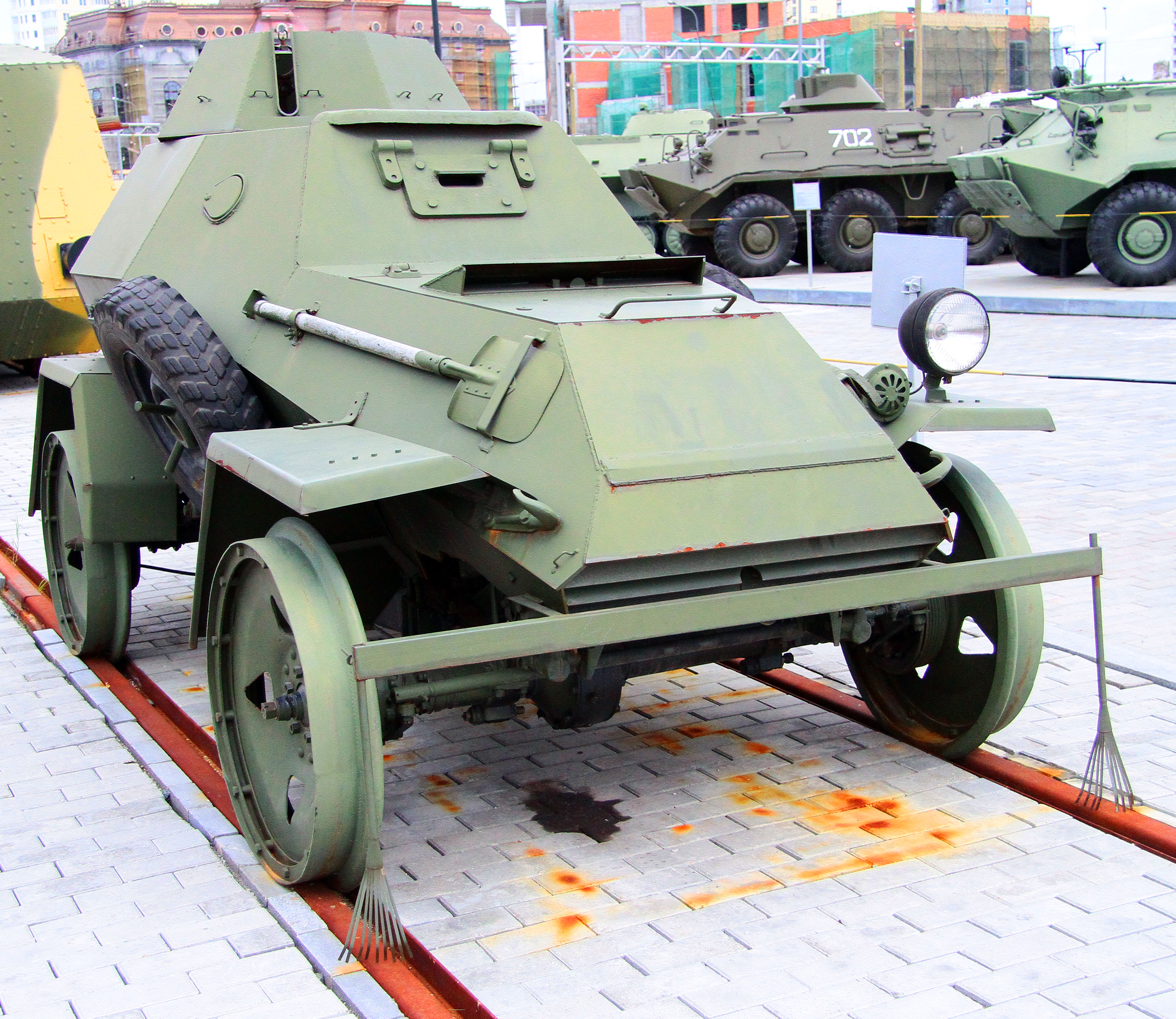 1930년대 소련은 6륜 장갑차 개발에 힘썼으나, 전륜구동이 아니어서 도로에서만 다닐 수 있다는 한계가 있었다.[2] 1940년, 소련 기갑군 총국은 전륜구동 장갑차 개발을 요구했고, LB-62, BA-NATTI 등이 개발되었지만, 무게, 연료 소비, 짧은 작동 범위 등의 문제로 붉은 군대에 채택되지 못했다.[2]1941년, 바르바로사 작전으로 인해 소련 군수 공장들이 우랄 산맥 동쪽으로 이전하면서 개발이 일시 중단되었다.[2] 그러나 고르키 자동차 공장(GAZ)은 예외적으로 생산을 계속하며 붉은 군대의 손실을 보충하는 데 중요한 역할을 했다.[2] GAZ는 경전차 및 군용 트럭 생산과 더불어, 기존 경차량 섀시를 기반으로 한 새로운 장갑차 개발에 착수했다.[2]