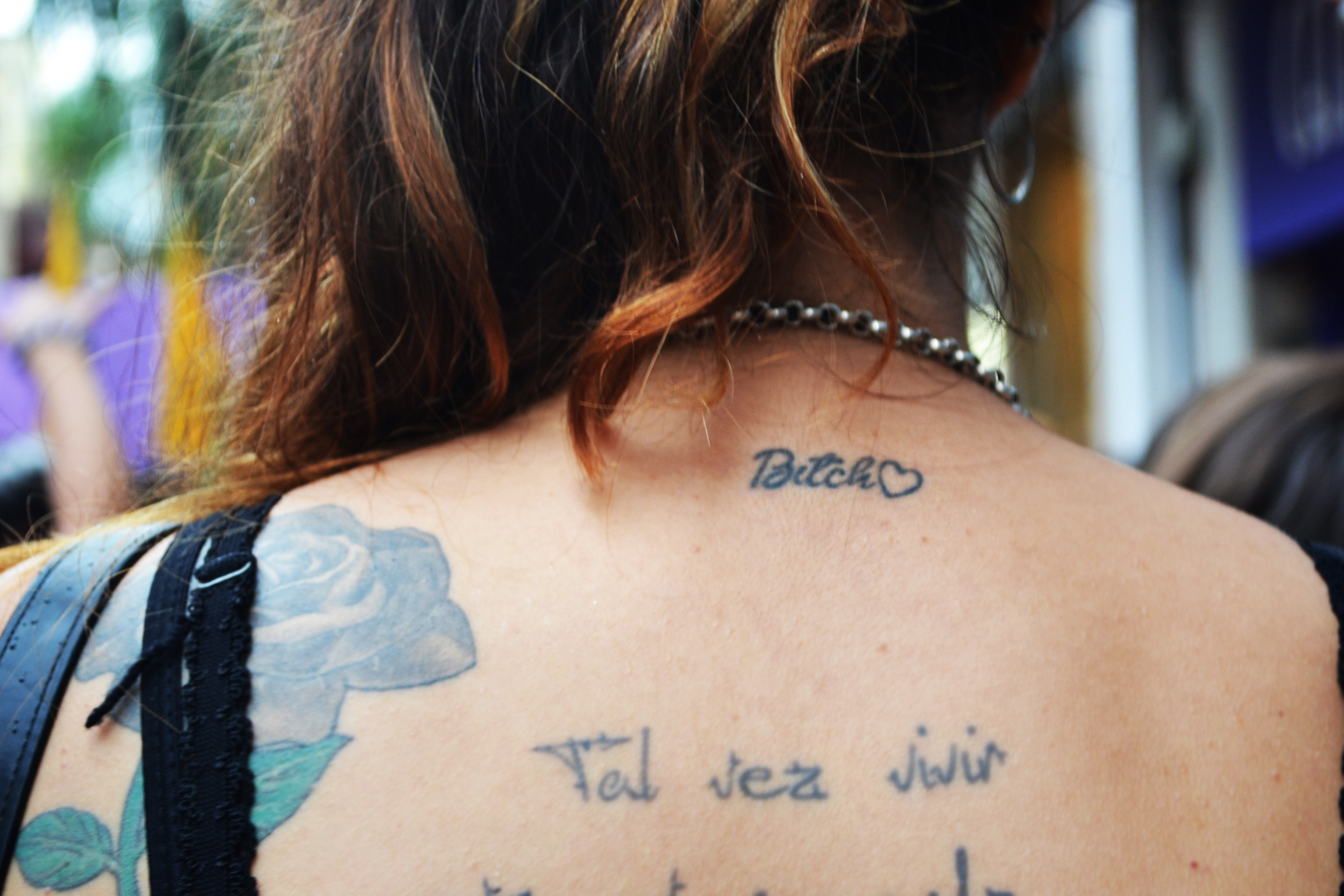 대중문화에는 "bitch"를 기반으로 한 여러 자기 정체성 슬로건이 있다. 예를 들어,