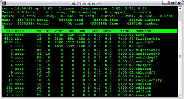 유닉스 명령어 top은 모든 프로세스의 CPU 시간, 우선순위, 경과된 실제 시간 및 기타 정보를 실시간으로 업데이트하여 제공한다.[1]