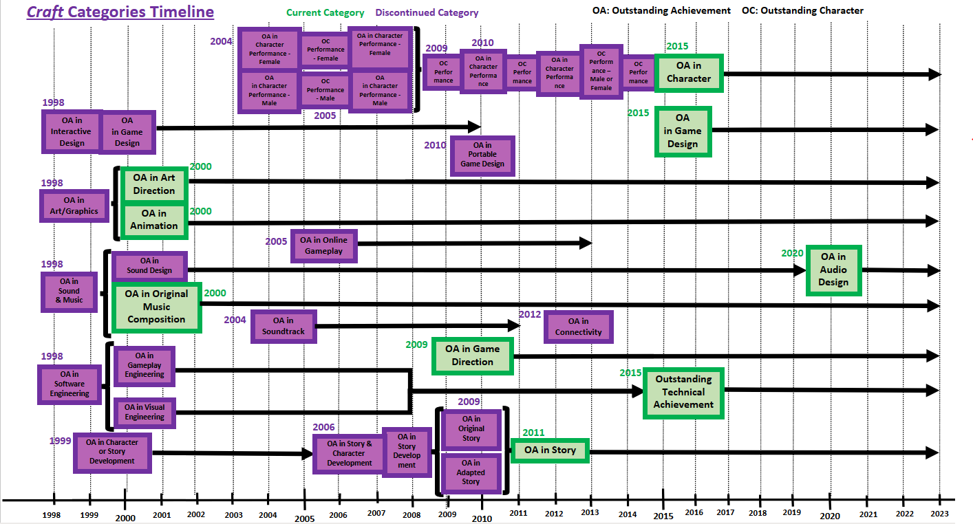 아카데미의 활동적인 크리에이티브/기술, 비즈니스 및 제휴 회원은 "올해의 게임", "올해의 모바일 게임", "올해의 온라인 게임" 및 "독립 게임의 뛰어난 업적"과 함께 모든 장르 부문에서 투표할 자격이 있다. 아카데미의 크리에이티브/기술 회원은 또한 자신의 전문 분야와 관련된 공예 부문에 투표할 수 있다.[9]
