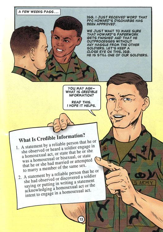 해군 대변인 크레이그 퀵글리 사령관은 당시 군 내부의 많은 반대를 표명하며 "동성애자는 악명 높게 문란하다"고 말했고, 공동 샤워 상황에서 이성애자는 "누군가 지켜보는 듯한 불편한 느낌"을 가질 것이라고 말했다.[33]