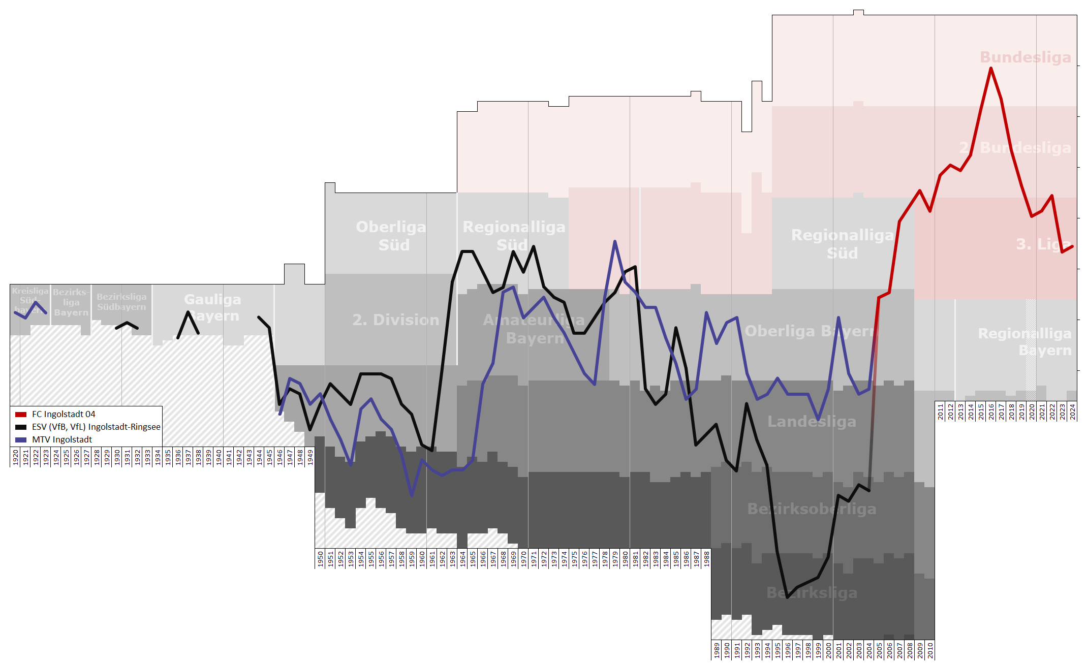 FC 잉골슈타트 04는 2004년 MTV 잉골슈타트와 ESV 잉골슈타트의 합병으로 창단되었으며, 두 전신 클럽의 팬들은 자연스럽게 통합되었다.[11] "슈타데러"라고 불리던 MTV 잉골슈타트 팬들과 "저 바깥의 사람들"이라고 불리던 ESV 잉골슈타트 팬들 간의 라이벌 의식은 친구이자 동맹 관계로 변화하였다.[11]