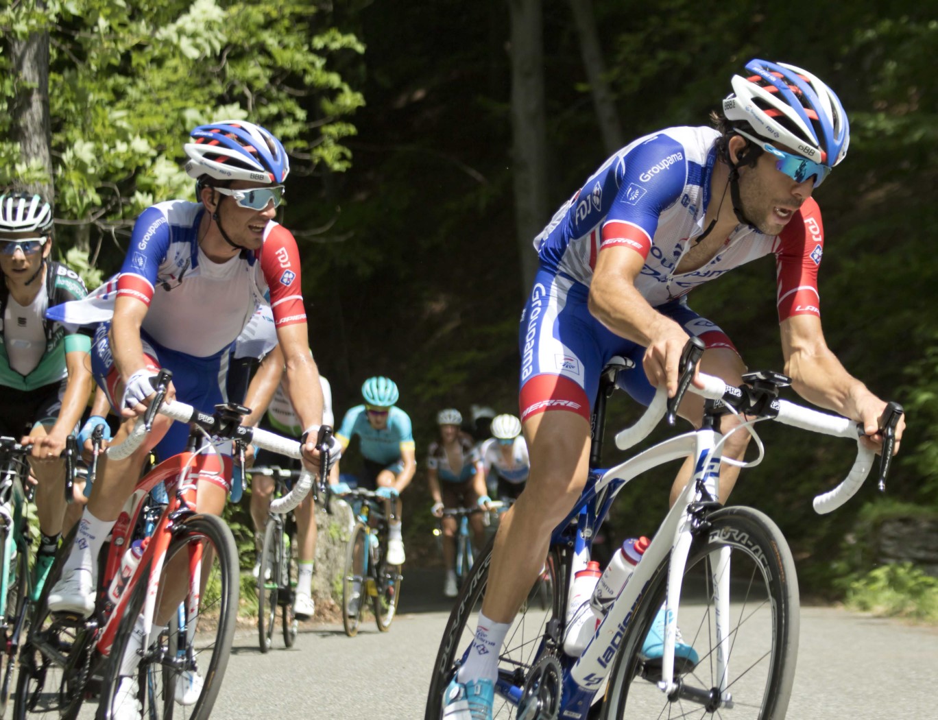티보 피노(오른쪽)와 세바스티앙 라이헨바흐(왼쪽)가 2018년 지로 디탈리아에서 FDJ 소속으로 출전