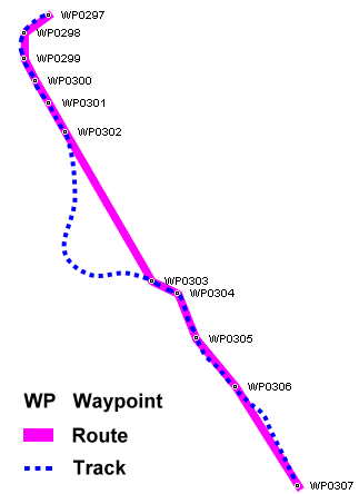 - 웨이포인트: WGS 84 (GPS) 좌표와 기타 설명 정보를 포함하는 단일 지점이다.