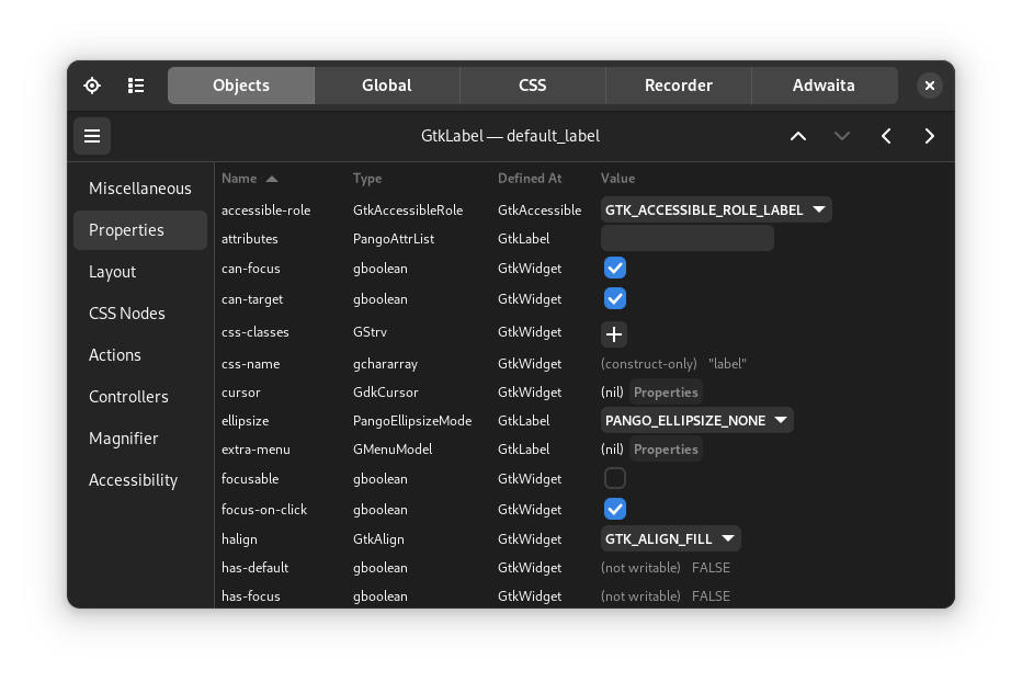 | 3.99.0 | 2020-07-31[103] | ATK 후속 제품 도입,[104] WAI-ARIA 구현 예정, GLib 유형 사용, 새로운 위젯, 수정 및 개선[103] | 3.99.4 |