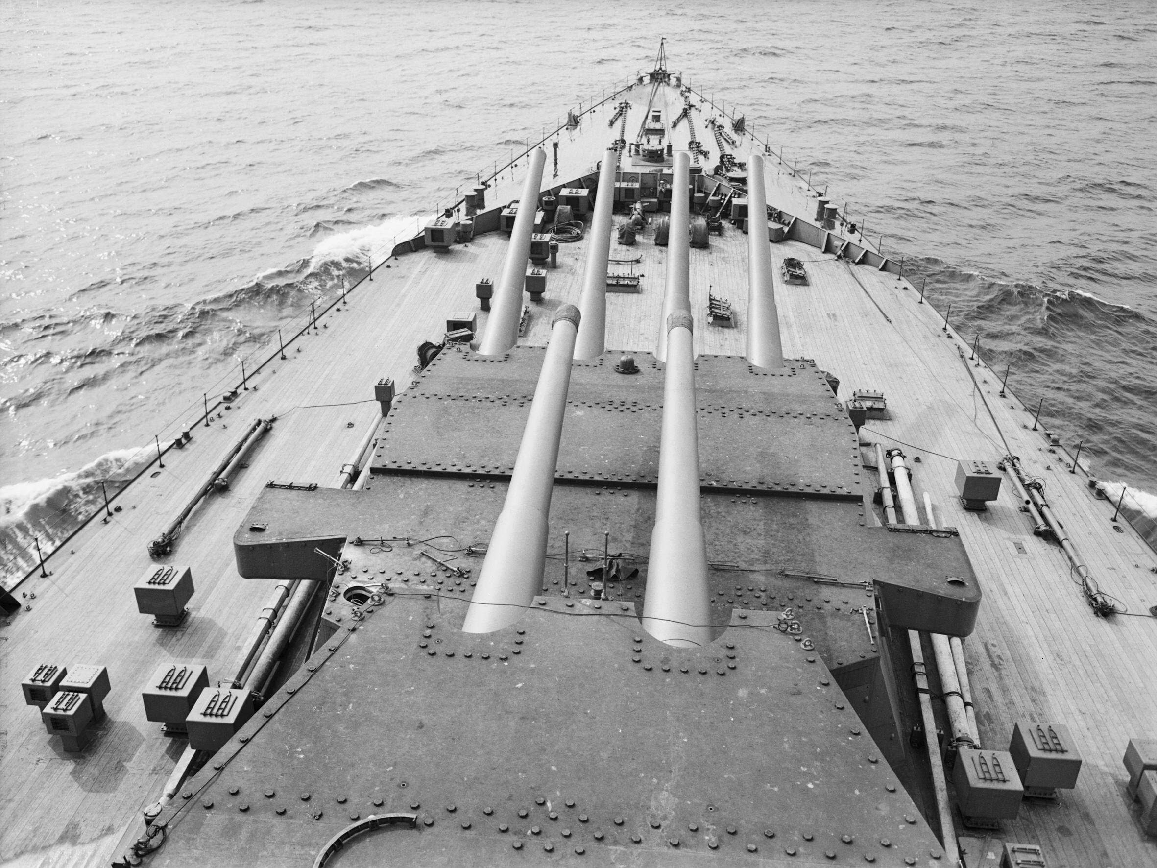 덴마크 해협 해전에서 HMS 프린스 오브 웨일스는 주포 고장을 겪었다. 첫 일제 사격 직후 A(1번) 포탑이 고장났지만, 세 번째 사격으로 비스마르크 연료 탱크와 보일러실에 피해를 입혔다. 비스마르크에 14인치 주포탄 3발, 프린츠 오이겐에 14인치 주포탄 1발(불발)이 명중했다. 웨일스가 비스마르크에 가한 피해는 예상보다 컸다. 함 중앙부 명중탄 1발은 불발이었으나, 다른 1발은 2번 보일러실 보일러 2기를 파괴, 승무원 5명을 부상시켰다. 함수 좌현 수선부 명중탄(불발)은 연료 탱크 2개를 관통하고 연료 공급 밸브를 파괴, 1,000톤의 연료 손실을 초래하여 작전에 지장을 주었다.