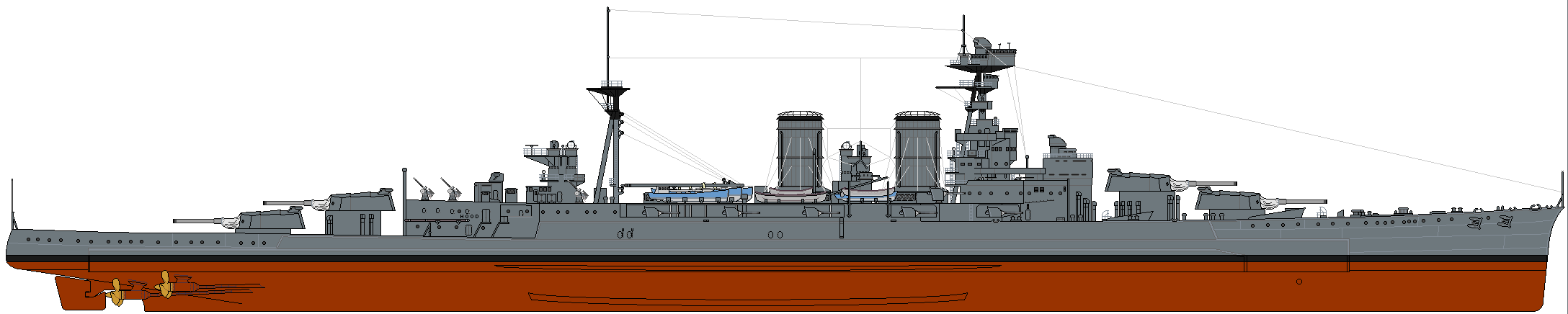 측면 장갑은 13인치 경사 장갑으로 15인치 주포를 막을 수 있었으며, 이는 미국 사우스다코타급 전함과 아이오와급 전함에 반영되었다.