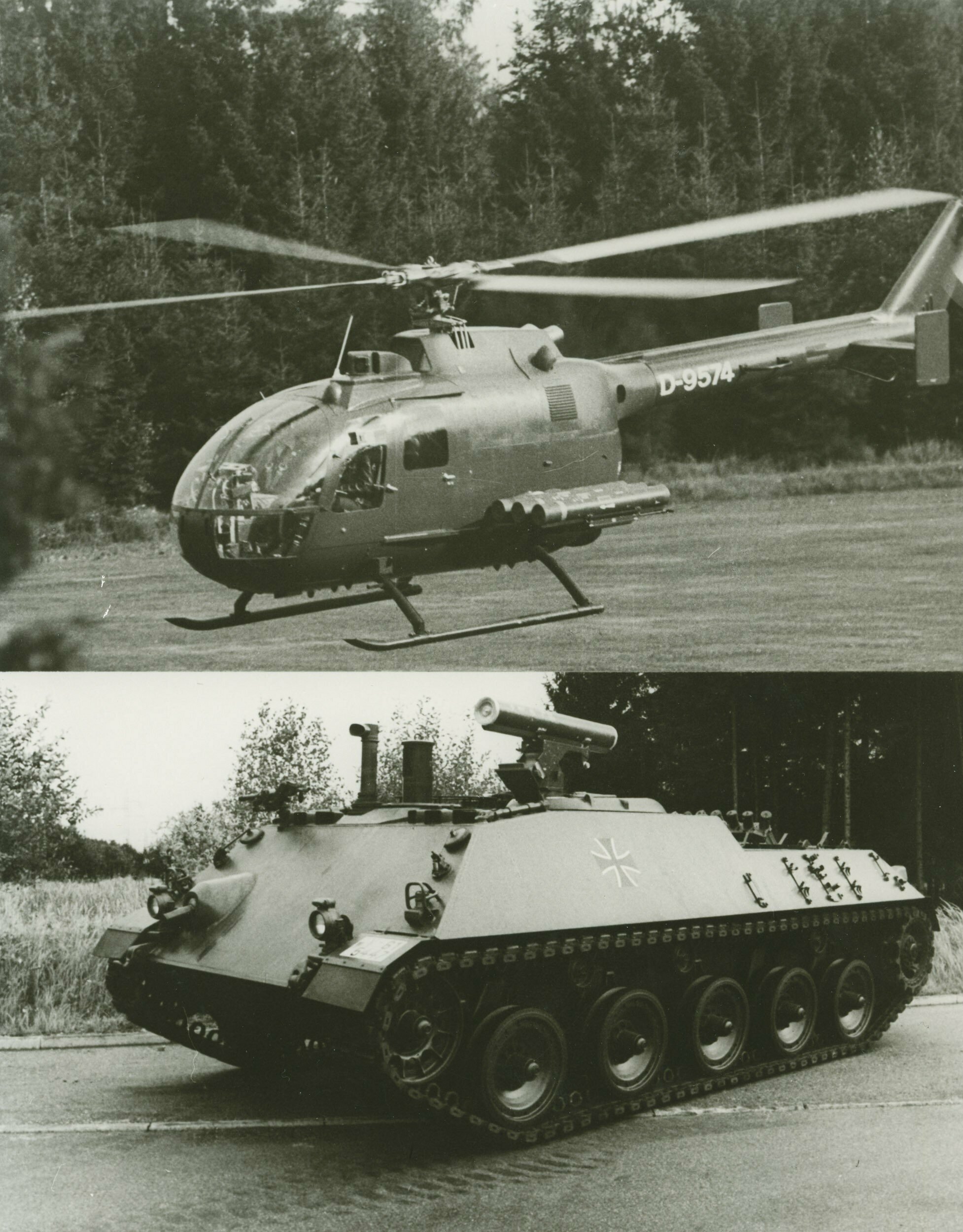 다양한 플랫폼에 시연된 HOT 미사일 시스템: MBB Bo 105 경헬리콥터와 궤도형 라케텐야크트판처 1 장갑 대전차 자주포