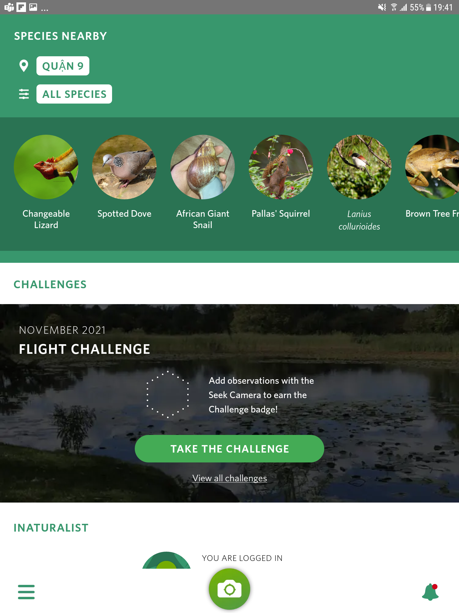 Seek by iNaturalist는 가족을 대상으로 하는 별도의 앱으로, 온라인 계정 등록이 필요 없으며 모든 관찰은 비공개로 유지될 수 있다. Seek는 게임화 기능을 통합하여, 찾을 수 있는 근처 유기체 목록을 제공하고 배지 수집 및 챌린지 참여를 장려한다. 2018년 봄에 처음 출시되었다.3. 4. 파트너 조직