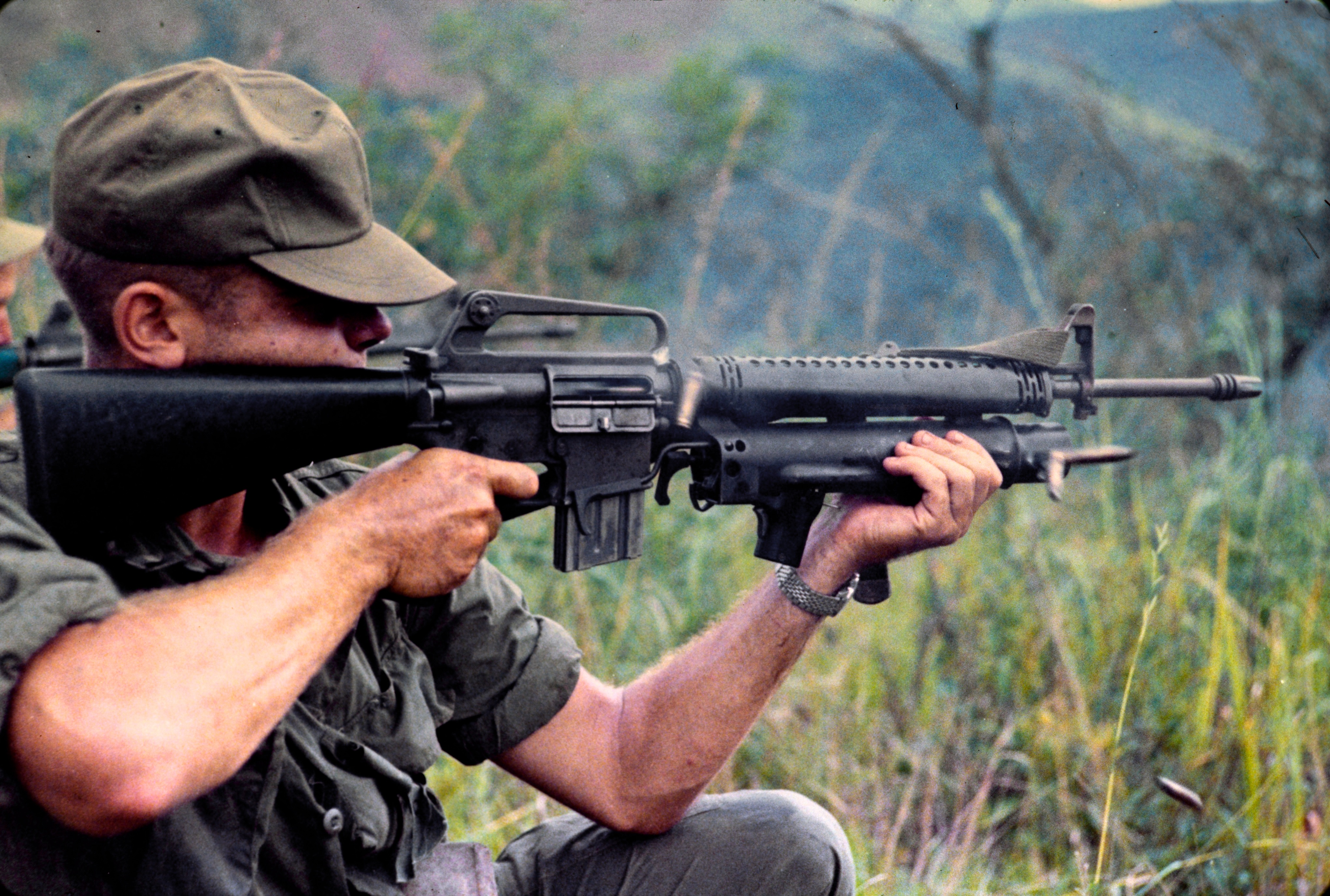 초기에는 M14 소총이 주력이었으나, 7.62 × 51 mm NATO 탄을 사용하는 M14는 베트남 정글 환경과 기계화보병 운용에 부적합했다. 반면, .223 레밍턴 탄을 사용하는 M16은 짧은 길이와 적은 반동으로 정글전과 기계화전에 유리하여 M14를 대체하게 되었다.