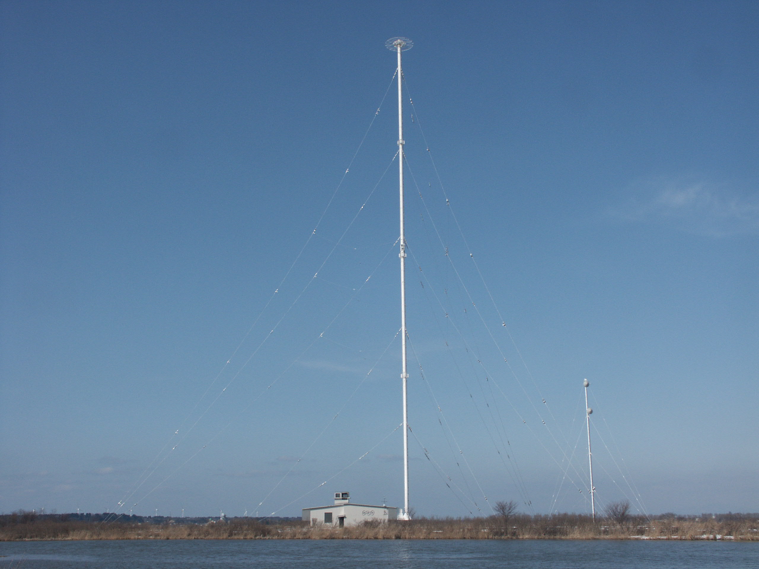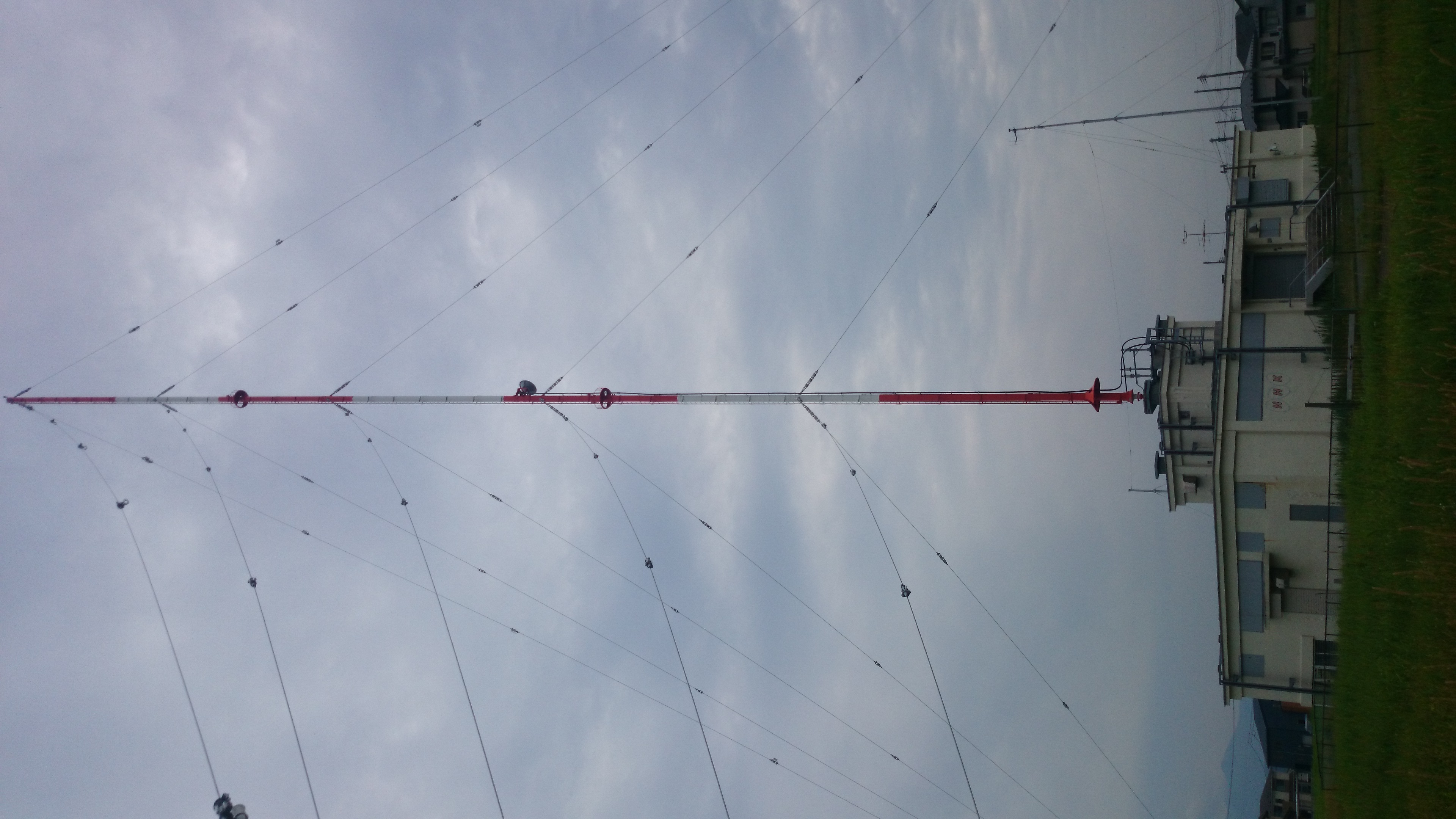 • 공중선: 165m 지선식 원관주 · 원관 직경 약 1m · 무게 약 100t