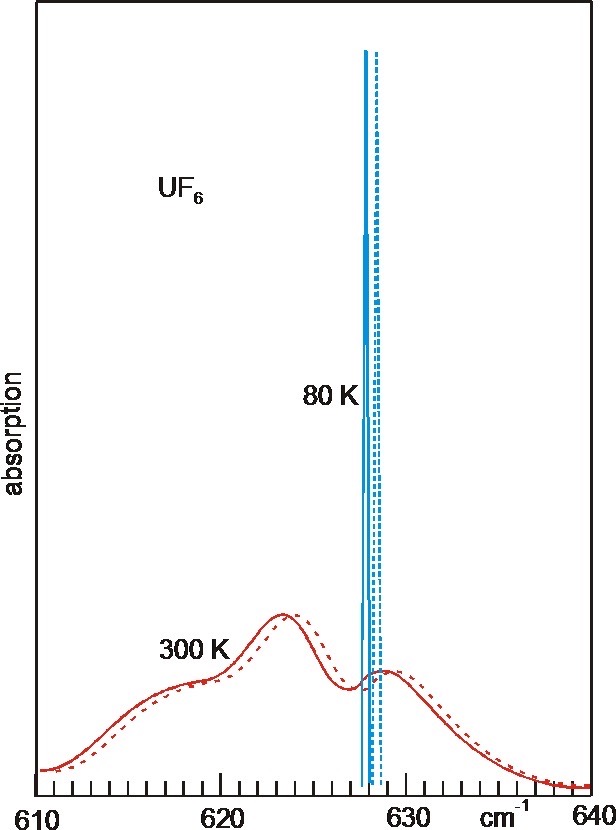 기체 UF6의 가장 짧은 파장의 기본 진동은 약 16 μm이다. 실온에서는 분자의 열적 움직임으로 인해 흡수 스펙트럼의 폭(약 20 cm−1)이 동위원소 간 차이(235UF6와 238UF6의 흡수선 차이, 약 0.6 cm−1)보다 훨씬 넓어져 동위원소를 선택적으로 여기시키기 어렵다. 따라서 선택적 여기를 가능하게 하려면 UF6 기체를 냉각해야 한다. 이를 위해 UF6를 아르곤이나 질소와 같은 캐리어 가스에 약 100배 희석시킨 후, 노즐을 통해 진공 상태로 단열 팽창시켜 약 80K(-193°C)까지 냉각한다. 팽창 초기에는 분자 간 충돌이 일어나며 냉각이 이루어지지만, 노즐 직경의 약 10배 거리를 이동하면 충돌이 거의 없어지고 응축도 멈춘다. 충돌을 피하는 것은 동위원소 간 에너지 전달을 막아 선택성을 유지하는 데 중요하다.