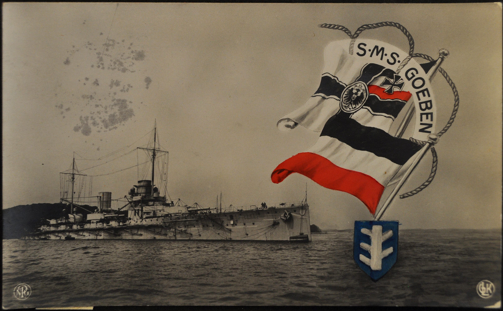 괴벤은 경순양함 브레슬라우와 함께 알제리 연안을 포격, 프랑스 육군 수송을 방해하려 했으나 큰 피해를 주지 못했다.[8][9] 이후 다르다넬스 해협을 통해 오스만 제국 콘스탄티노플(이스탄불)로 도주, 8월 10일 도착했다.[11][12] 8월 16일, 괴벤은 오스만 해군 순양전함 '''야우즈 술탄 셀림'''으로, 브레슬라우는 '''미딜리'''로 개명되었고, 승무원은 오스만 해군으로 옮겨 독일인 장병 지휘 아래 운용되었다.[13][14]