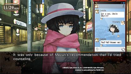 2025년, 오카베는 2010년의 자신에게 D메일 비디오를 보낸다. 이 비디오에서 오카베는 과거의 자신에게 크리스를 구하고 이전 게임의 진 엔딩 루트에서 일어날 사건들을 일으키는 방법을 설명한다. 이후, 오카베는 타임머신을 타고 마유리와 스즈하를 찾아 2025년으로 안전하게 데려온다.4. 제작