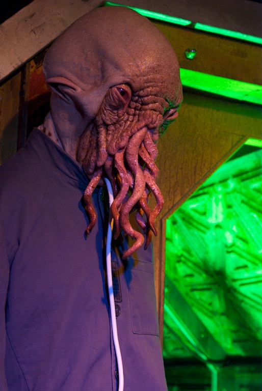 외계 행성 장면은 채석장을 활용했는데, 이는 2005년 부활한 《닥터 후》 시리즈에서 처음 있는 일이었다.[1] 총괄 프로듀서 러셀 T 데이비스는 이러한 제작 결정에 호의적이지 않았다.[3] 우드 가면은 눈이 인간과 다른 위치에 있어, 우드 역할을 맡은 배우들은 가면의 핀 크기 구멍으로 봐야 했다.3. 등장인물