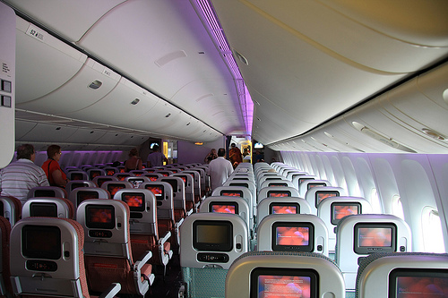 국제선 이코노미 클래스의 좌석 배열은 3-3-3이었다. 81cm(32인치)의 좌석 간 간격, 47cm(18.8인치)의 좌석 너비, 최대 15cm(6인치)의 등받이 각도를 제공했다. USB 슬롯이 있어 노트북이나 MP3 플레이어 등의 개인 장치를 충전할 수 있었다. 9인치 터치스크린 PTV를 통해 AVOD 기능을 이용할 수 있었다.[31]
