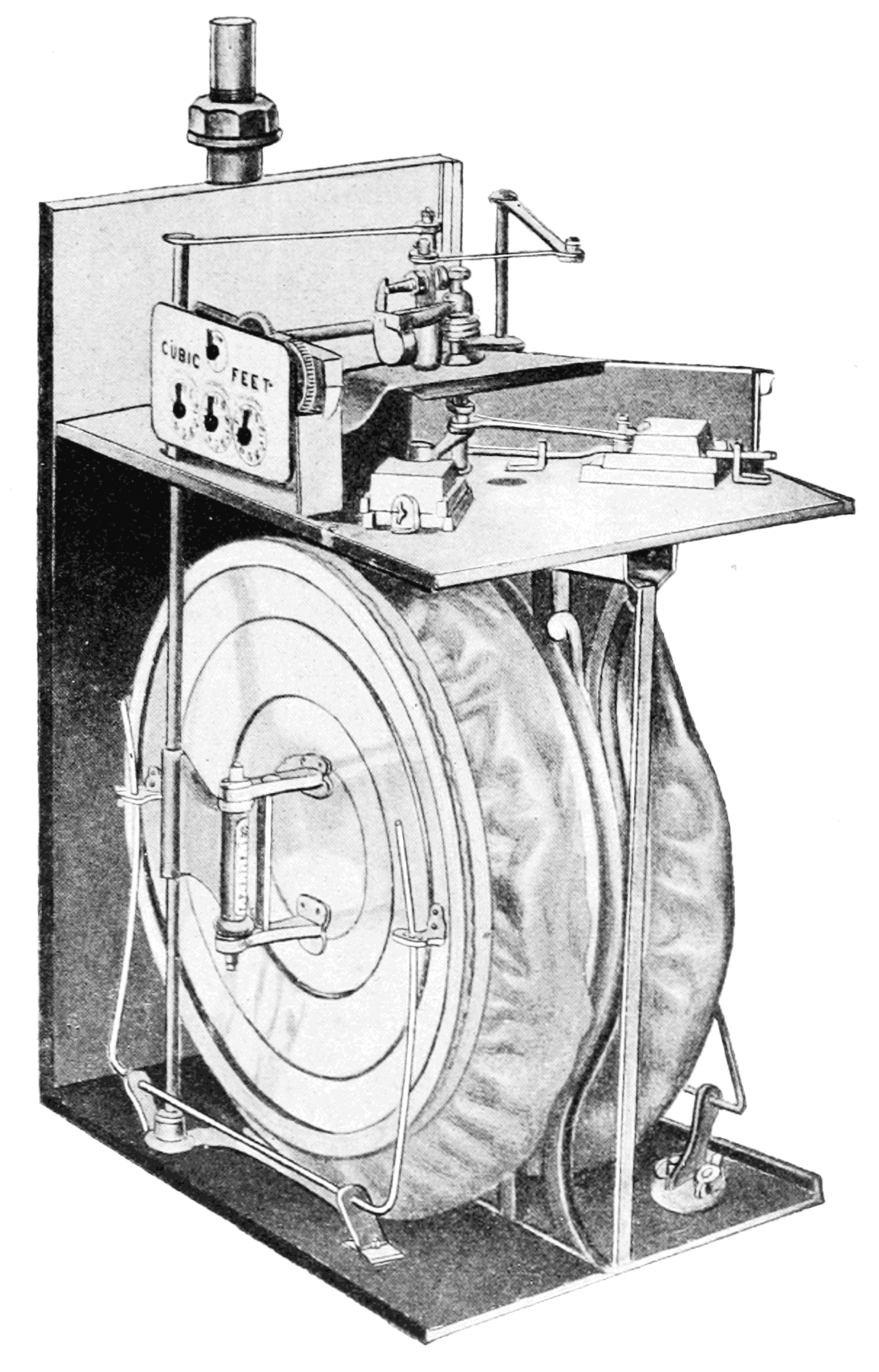 1792년 영국의 과학자 윌리엄 머독에 의해 석탄의 건류에 의한 합성 가스가 발명되었다. 1812년, 독일 태생의 실업가 프레데릭 A. 윈저에 의해 런던 웨스트민스터 가스라이트 앤드 코크사가 설립되어 세계 최초의 도시 가스 사업이 시작되었다. 처음에는 주로 조명용으로 사용되었고, 사용 시간과 등수에 따라 가스 요금이 결정되었지만, 공업용으로 대량 사용되면서 정확하고 자동적으로 소비량을 측정할 필요가 생겼다. 1815년, 영국의 기술자 새뮤얼 클레그/Samuel Clegg영어가 개발한 습식 가스미터가 처음 실용화되었지만, 압력 손실 및 출력 변동이 크고, 고가이며, 동결에 약하다는 단점이 있었다. 1843년, 윌리엄 리처드는 두 개의 원형 다이어프램과 두 개의 슬라이드 밸브를 가진, 건식 가스미터의 원형이 되는 미터를 고안했다. 다음 해, 리처드와 크롤은 이를 개량하여 정확성을 향상시킨 미터로 특허를 취득했다. 몇 년 후, 토마스 글로버가 더욱 개량을 가하여 글로버의 2막식 슬라이드 밸브 미터라고 불리는 미터를 개발했다. 이 기본 원리는 현재 널리 사용되는 가스미터와 거의 동일하다. 습식 미터에 대해서는 1896년에 찰스 A. 하인만이 저항 감소와 대용량화의 개량을 한 '하인만 드럼'이 개발되었다. 대부분 주철로 만들어졌으며, 주로 가스 제조소에서 제조량 및 송출량 계량에 사용되었다. 가장 큰 것은 직경과 길이가 약 5.4m 정도였다.