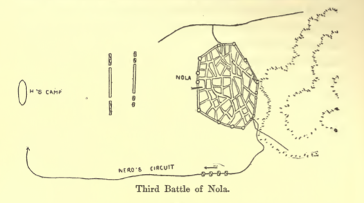 한니발이 3년째 다시 돌아오자 마르켈루스는 도시를 방어할 준비를 했다. 그는 가이우스 클라우디우스 네로에게 최고의 기병대를 이끌고 어둠을 틈타 적군 뒤를 우회하여 전투가 시작되면 후방에서 공격하도록 했다. 그러나 시간 조절에 실패했거나 길을 잃어 계획을 실행하지 못했다. 리비우스는 로마군이 승리하여 로마군 400명의 손실로 카르타고군 2,000명을 죽였지만, 기병의 지원 없이 마르켈루스는 도주하는 군대를 추격하지 못했다고 전한다. 해 질 무렵 클라우디우스 네로가 진영으로 돌아오자, 마르켈루스는 "칸네에서 겪었던 재앙을 적에게 갚지 못한 것은 그의 잘못"이라고 질책했다.[6]