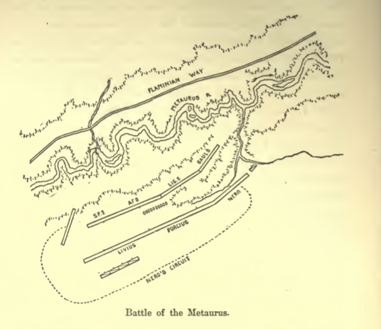기원전 208년, 스키피오는 바에쿨라 전투에서 하스드루발을 패퇴시켰으나, 한니발과의 전투에서 두 명의 집정관이 사망하는 등 로마에게도 큰 타격이 있었다.[40] 기원전 207년의 메타우루스 전투는 로마의 결정적인 승리로 제2차 포에니 전쟁의 전환점을 만들었다.[41]하스드루발은 이탈리아에서 형 한니발과 합류하려 했으나, 클라우디우스 네로가 이끄는 로마 군단에 의해 추격당했다.[41] 하스드루발은 한니발에게 회합 지점을 알리는 전령을 보냈지만, 이들은 로마군에 가로채져 계획이 발각되었다.[43] 클라우디우스 네로는 전략적 요충지에서 한니발 근처에 주둔하고 있었는데, 동료 집정관인 리비우스보다 남쪽에 있었다. 그는 리비우스와 합류하여 하스드루발에게 대항하기 위해 북쪽으로 행군을 시작했다.[43] 이때 대부분의 군대는 한니발을 감시하도록 남겨두고, 밤에 리비우스와 합류했다.