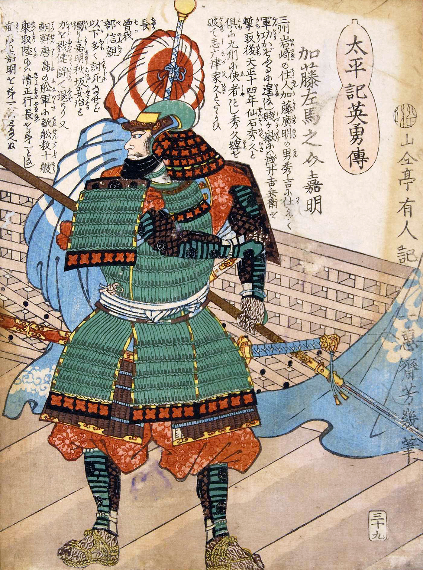 가토 사마스케 요시아키는 아와지 수군을 이끌고 일본 수군의 부장급으로서 각지에서 맹렬히 싸웠다. (낙합 요우키 작 『태평기 영웅전 39』)