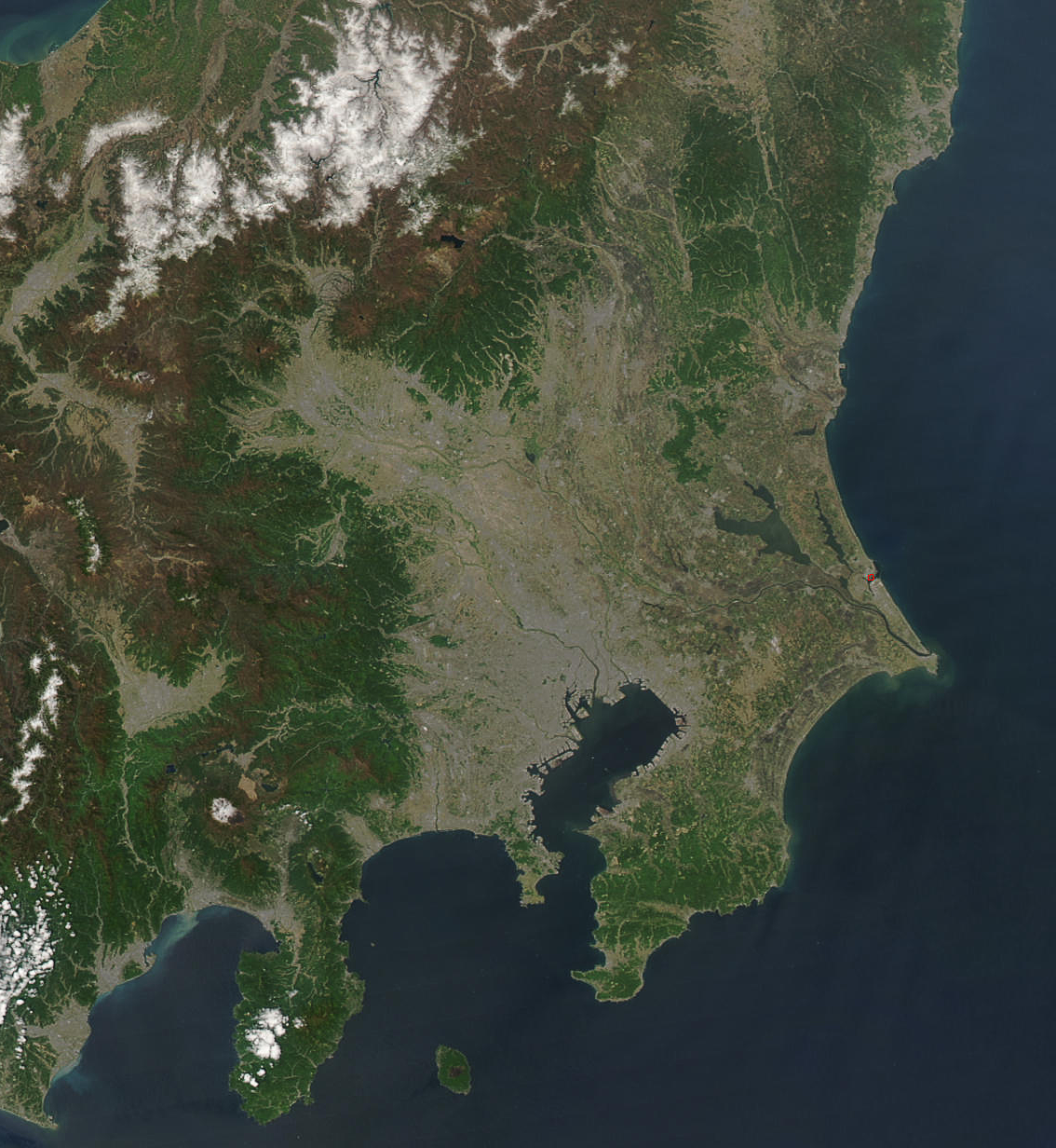 야요이 시대가 시작되면서 사이타마현 전역과 도쿄 23구 동부 일부가 육지화되었다. 간토 지방에서도 벼농사가 시작되었으며, 다마가와 유역이나 사가미 평야를 중심으로 농경이 이루어졌을 것으로 생각된다. 해수면 후퇴와 토사 퇴적으로 인해, 당시 도쿄만으로 흘러들어가던 에도가와 하류 지역에 광대한 충적 평야가 생겨났지만, 당시의 미숙한 관개 기술로는 경작지로 만들기 어려웠다. 관동 로옴층으로 덮인 대지는 수원이 많지 않아 여전히 깊은 숲으로 남아 있었다.