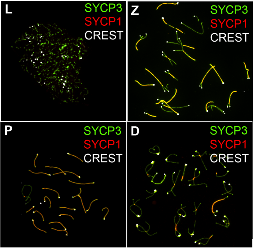 감수분열 I은 상동 염색체가 분리되어 염색체 수가 절반으로 줄어드는 '감소 분열'이다. 이때 2가 염색체(4분 염색체)가 형성되고 상동 재조합이 일어난다.[14]
