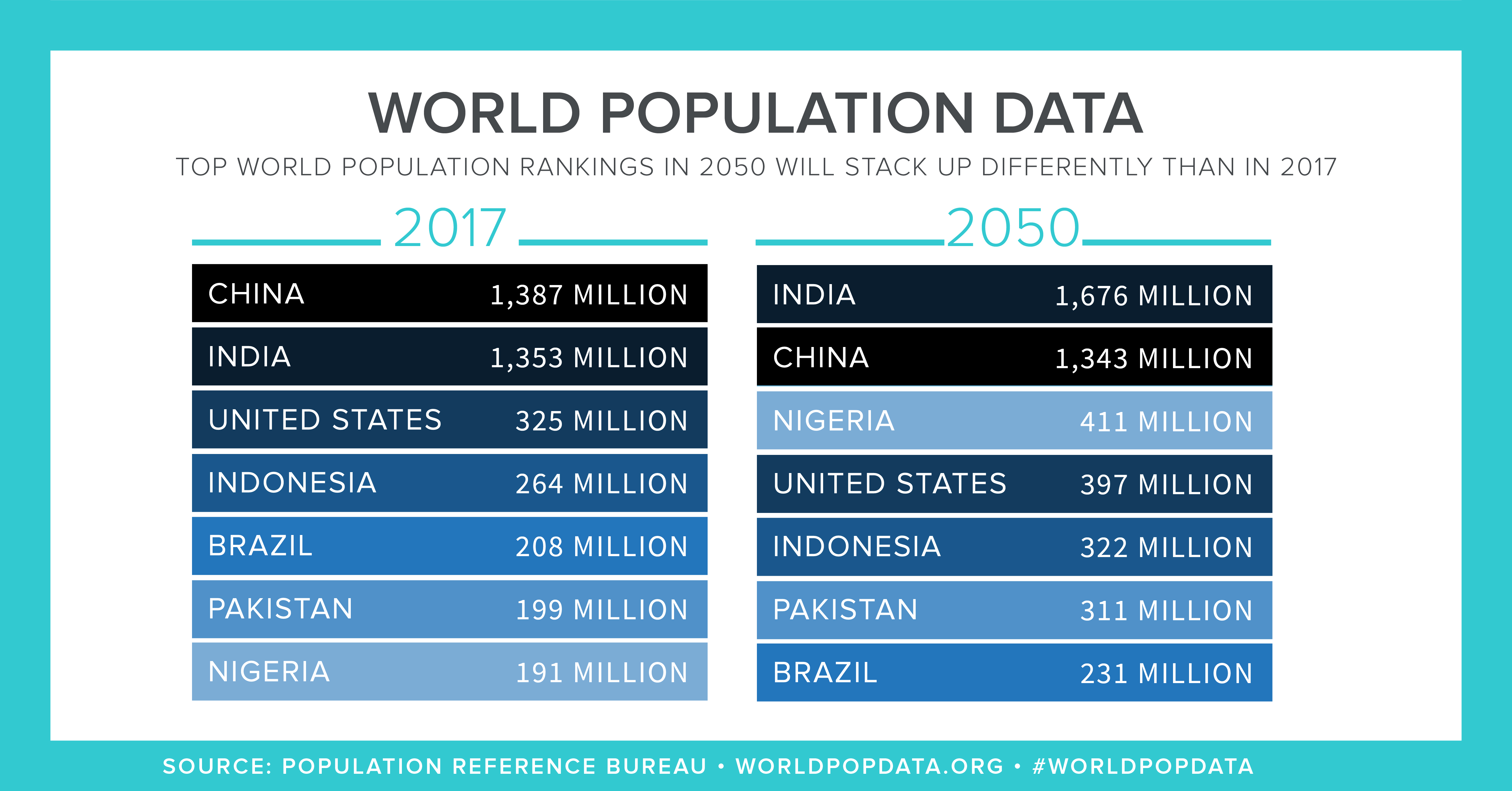미래에는 세계 인구가 정점에 도달한 후,[18] 경제적 이유, 건강 문제, 토지 고갈, 환경 위험 등으로 인해 감소할 것으로 예상된다. 한 보고서에 따르면, 21세기 말 이전에 인구 성장이 멈추고, 2100년 이전에 인구가 감소할 가능성도 있다.[19][20] 이미 동유럽, 발트해 연안 국가, 독립 국가 연합(CIS)의 전 회원국에서는 지난 10~20년 동안 인구가 감소했다.[21]