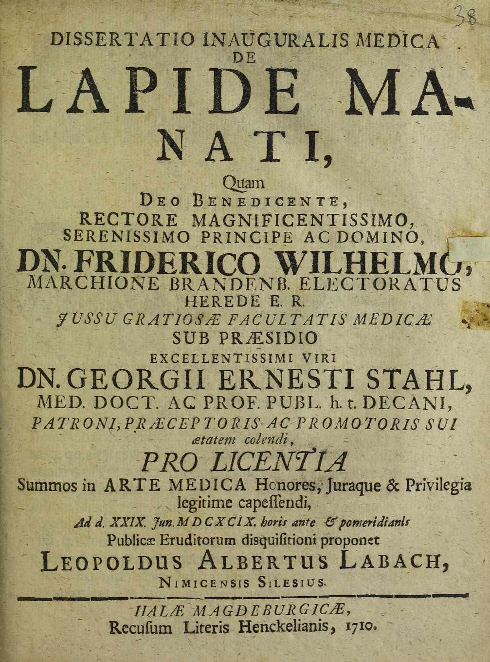 - ''Georgii Ernesti Stahlii opusculum chymico-physico-medicum : seu schediasmatum, a pluribus annis variis occasionibus in publicum emissorum nunc quadantenus etiam auctorum et deficientibus passim exemplaribus in unum volumen iam collectorum, fasciculus publicae luci redditus / Praemißa praefationis loco authoris epistola ad Michaelem Alberti'' (1715) 뒤셀도르프 대학교 및 주립 도서관 [http://nbn-resolving.de/urn:nbn:de:hbz:061:2-9876 디지털 버전]