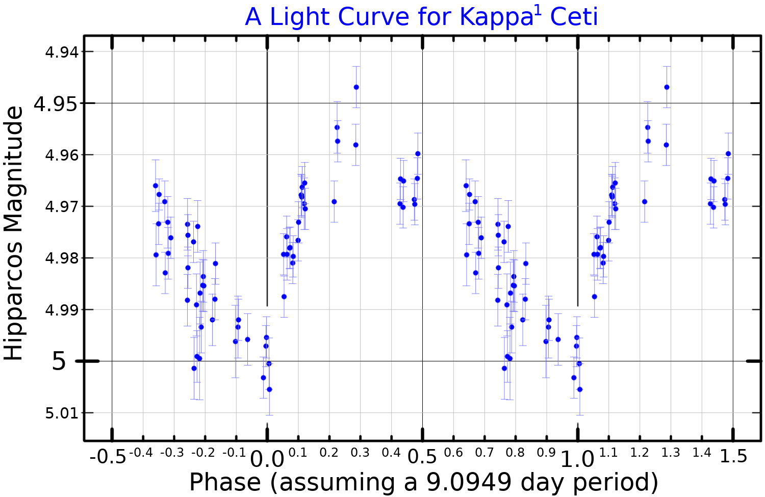 또한, 약 5.9년 주기의 장기적인 밝기 변화도 관측되며, 채층 스펙트럼도 이와 비슷한 5.6년 주기의 변동을 나타내므로, 이는 태양 활동 주기와 같은 활동 주기성이 있는 것으로 보인다.