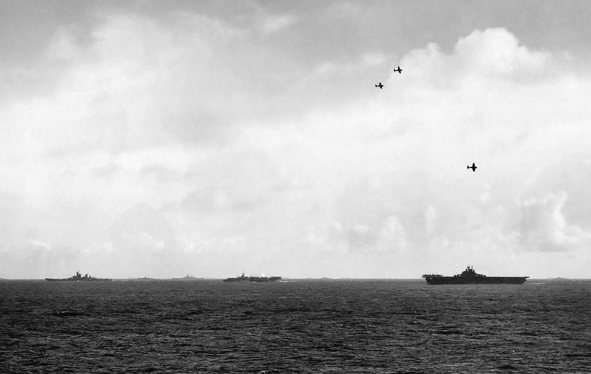 진주만 공습과 미드웨이 해전을 통해 미 해군은 함대전의 주력이 전함 주포에서 항공모함 탑재 항공기의 무장으로 바뀌었음을 인지했다.[16] 이에 따라 항공모함을 제외한 전투함들은 항공모함 주위를 원형으로 둘러싸 대공 방어망을 제공하는 임무를 맡았다.
