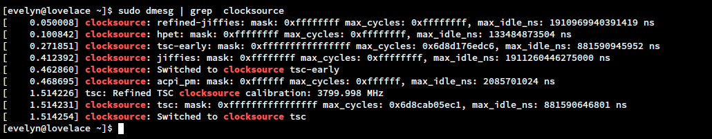 리눅스 커널은 HPET를 클럭 소스로 사용할 수 있다. Red Hat MRG 버전 2의 문서는 TSC가 오버헤드가 훨씬 적기 때문에 선호되는 클럭 소스라고 명시하고 있지만, 폴백으로 HPET를 사용한다. 1,000만 건의 이벤트 수를 대상으로 하는 해당 환경의 벤치마크에서 TSC는 약 0.6초, HPET는 12초 약간 넘게 걸렸고, ACPI 전원 관리 타이머는 약 24초가 걸렸다.[6]