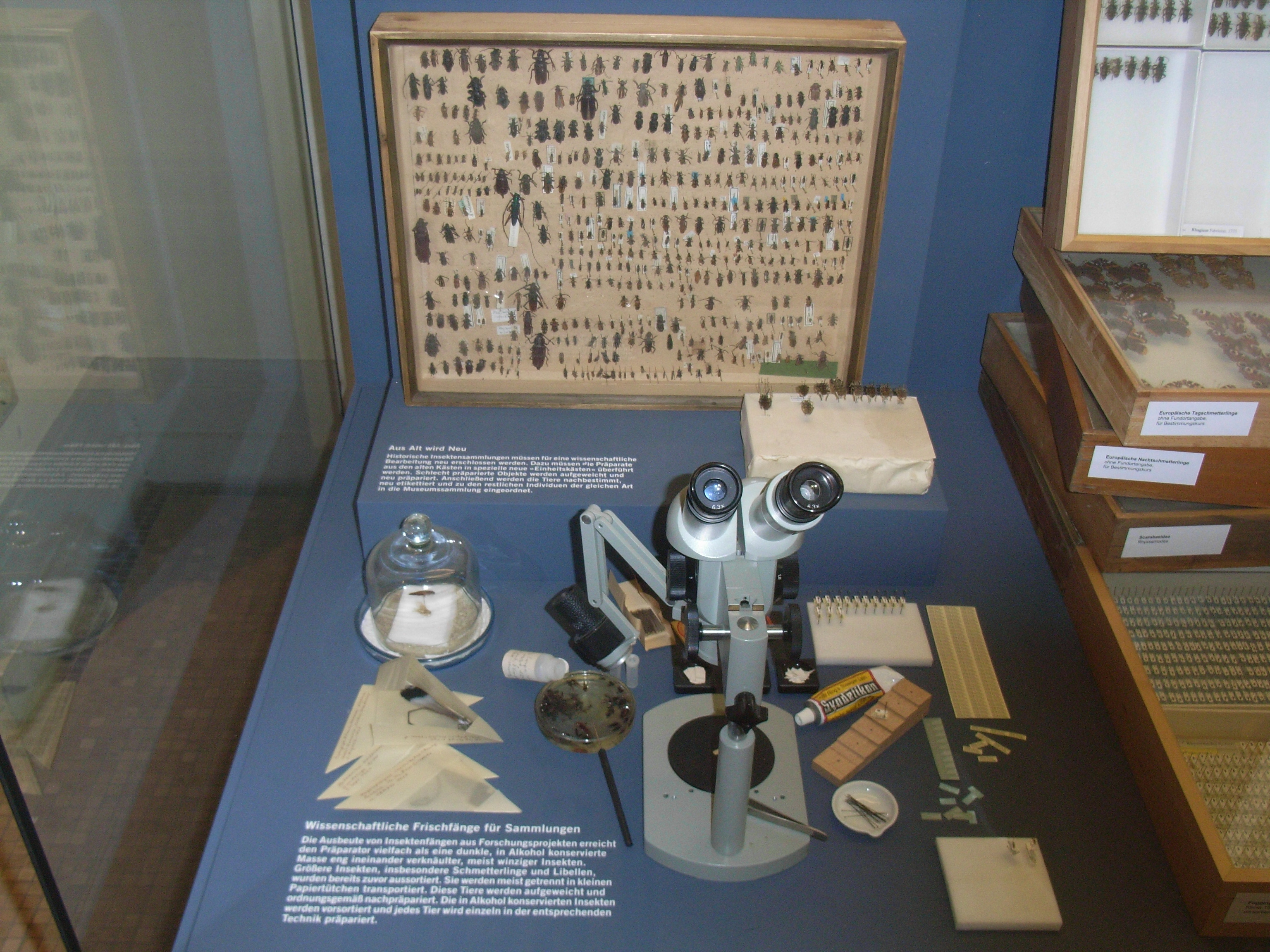 표본을 담는 상자도, 표본을 먹는 벌레가 들어가지 않도록, 오동나무 등의 목재로 밀봉할 수 있는 꼼꼼한 것(독일 상자 인로우 상자 등)이 판매되고 있지만, 좋은 것은 고가이다. 그러나, 유럽에 비하여 고온 다습하기 때문에 벌레 피해, 곰팡이 피해가 심한 일본에서는, 이 표본 상자의 음미가 필수적이다(가장 근년에는 일본의 주택 사정도 변화하여, 가옥의 외벽이 강화되었기 때문에, 옛날만큼 벌레 피해나 곰팡이의 피해는 일어나지 않게 되었다). 유럽의 박물관 등에서는 일본이라면 아이의 장난감적인 표본 상자로 간주되고 있는 골판지제의 표본 상자가 보통 사용되고 있다고 한다.