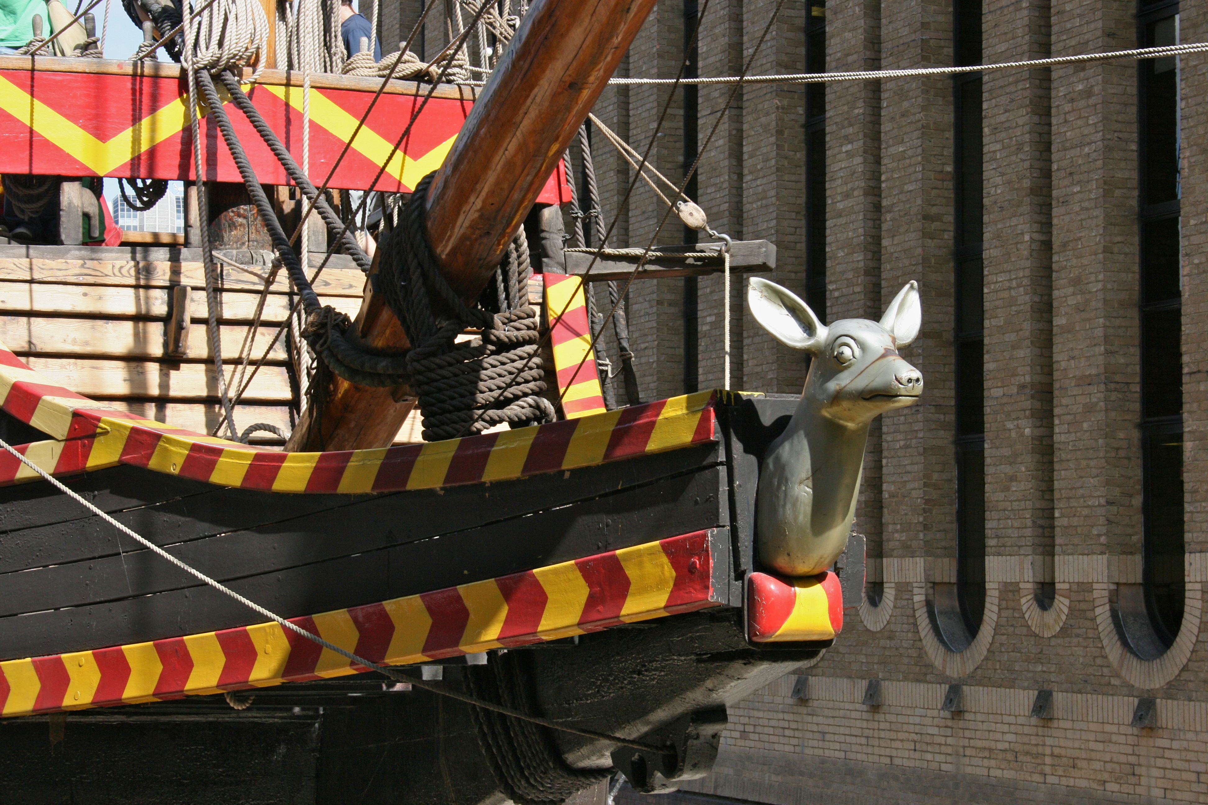 설명 | 1973년에 제작된 16세기 갤리온 "골든 하인드"의 복제품 |