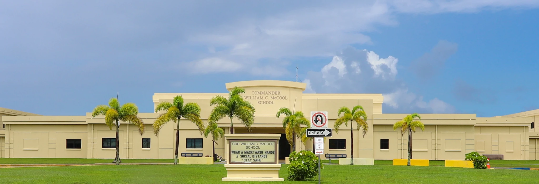 미국 국방부 교육 활동국(DoDEA)과 관련하여, 괌 해군기지는 맥쿨 초등학교 및 맥쿨 중학교의 통학 구역에 속하며, 괌 고등학교는 섬의 유일한 DoDEA 고등학교이다.[7]