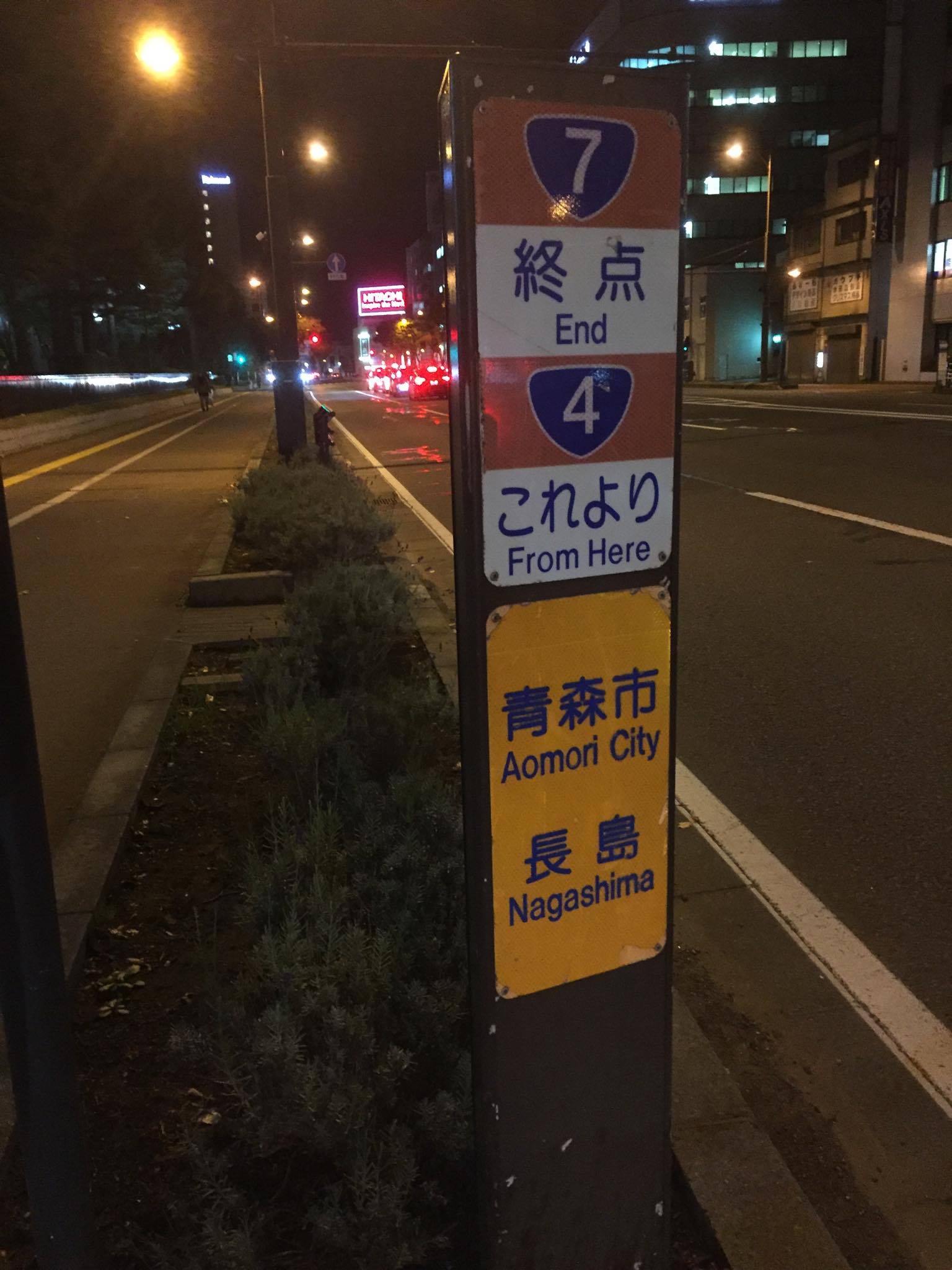 - 종점: 아오모리시 (나가시마 2-10-2, 아오이모리 공원 앞, 국도 제7호선·국도 제45호선 종점, 국도 제101호선 기점)
