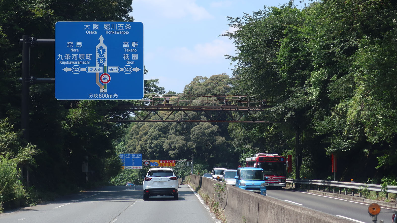 시가현 구간은 비와호 동쪽을 따라 남북으로 이어지지만, 인구 증가와 교통량 증가로 인해 히코네시, 오미하치만시, 릿토시 등 여러 지역에서 만성적인 교통 체증을 겪고 있다. 특히 오미하치만시에서 릿토IC 구간은 편도 1차선 구간이 많아 정체가 심각하며, 이를 해소하기 위해 야스 릿토 바이패스 등 우회도로 건설이 추진되고 있다. 릿토시의 릿토IC 부근에서 국도 제1호선과 합류하며, 이후 종점인 교토시 가라스마고조 교차로까지 국도 1호선과 중복된다.
