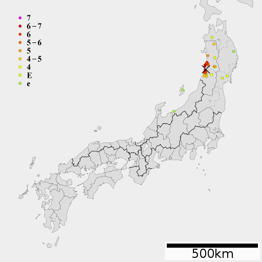 발생 위치 | 북위 39.05도, 동경 139.95도 |