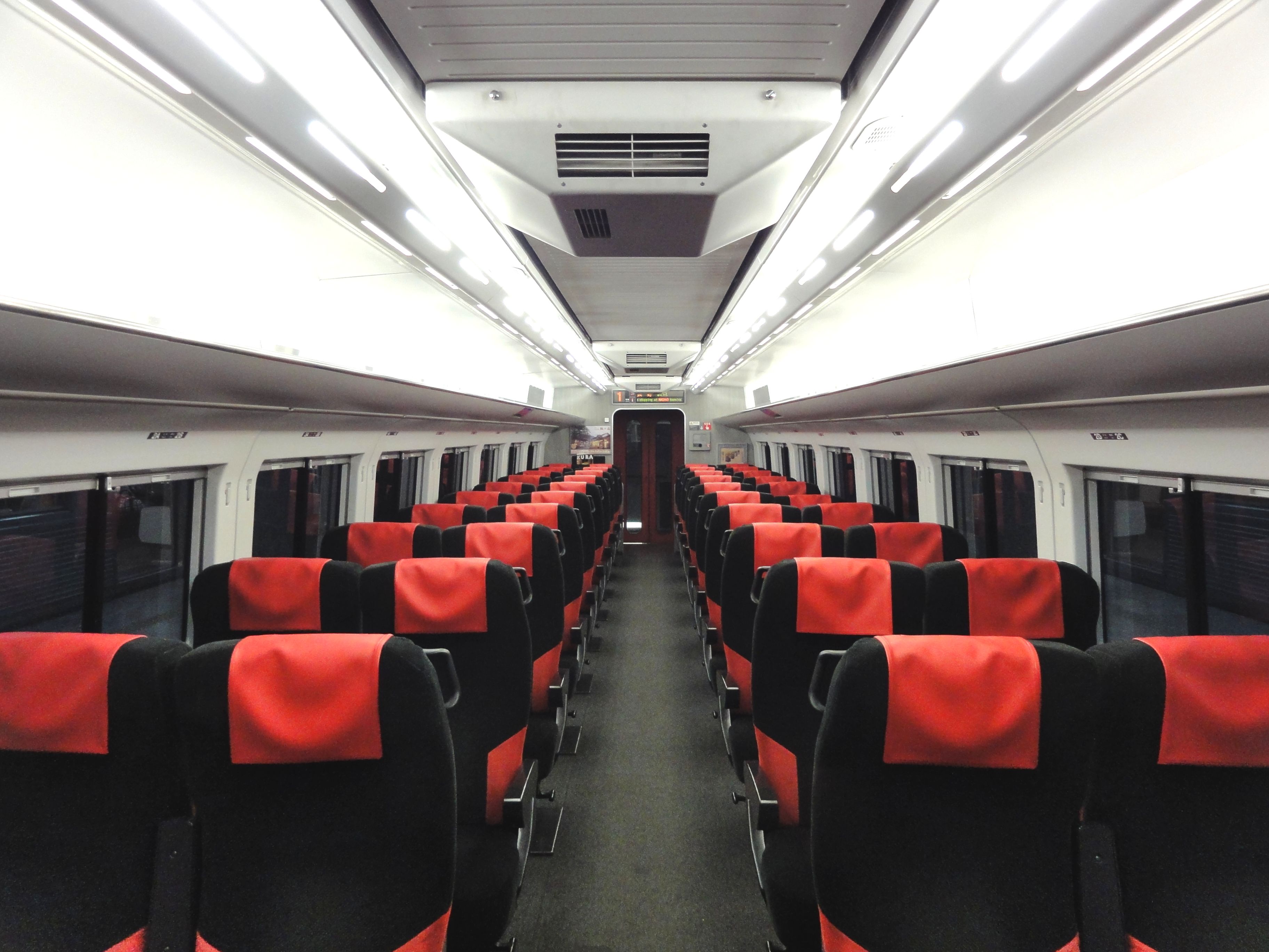 2호차와 3호차는 좌석 배치를 그대로 유지하며, 고정식 단방향 비-리클라이닝 좌석이 2+2 배열로 중앙에 4석 베이가 배치되어 있다. 1호차에는 리클라이닝/회전 좌석이 있으며, 4명이 앉을 수 있는 원래의 개인실도 유지하고 있는데, 이는 일본어로 원숭이를 뜻하는 단어와 비슷한 발음의 Spa猿~ん|Spa sarūn일본어으로 명명되었다.[3] 원래의 화장실은 유지되었지만, 사용이 금지되었다.[5]
