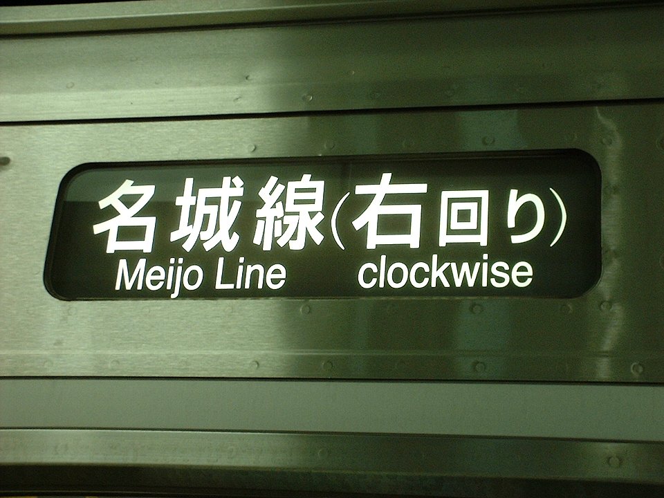 메이조선에서는 운행 방향 안내에 다른 일본의 환상 철도 노선에서 일반적으로 사용되는 "바깥쪽 순환", "안쪽 순환" 대신, "시계 방향", "반시계 방향"이라는 표현이 사용된다. 이는 전철이 오른쪽 통행인지 왼쪽 통행인지 국가나 지역에 따라 다르기 때문에, "바깥쪽 순환", "안쪽 순환"으로는 반대 방향으로 이해될 우려가 있다는 점, 그리고 운행 중인 전철의 위치를 확인할 수 없는 터널 안에서는 안과 밖이라는 구분이 적절하지 않다는 교통국의 판단[52]과, 노선도상에서도 "시계 방향", "반시계 방향"이 직관적이고 이해하기 쉽다는 유니버설 디자인의 생각에 따른 것으로, 기존 나고야시 교통국에서 순환 운행을 하는 시내 버스에서 사용되던 표현을 따른 것이다(가미샤 11호, 아라마키 13호 계통 등). 환상 운행 열차에 대해서는 모든 역의 발차 표지나 차량의 행선막에 "메이조선(시계 방향)", "메이조선(반시계 방향)"으로 표시된다.