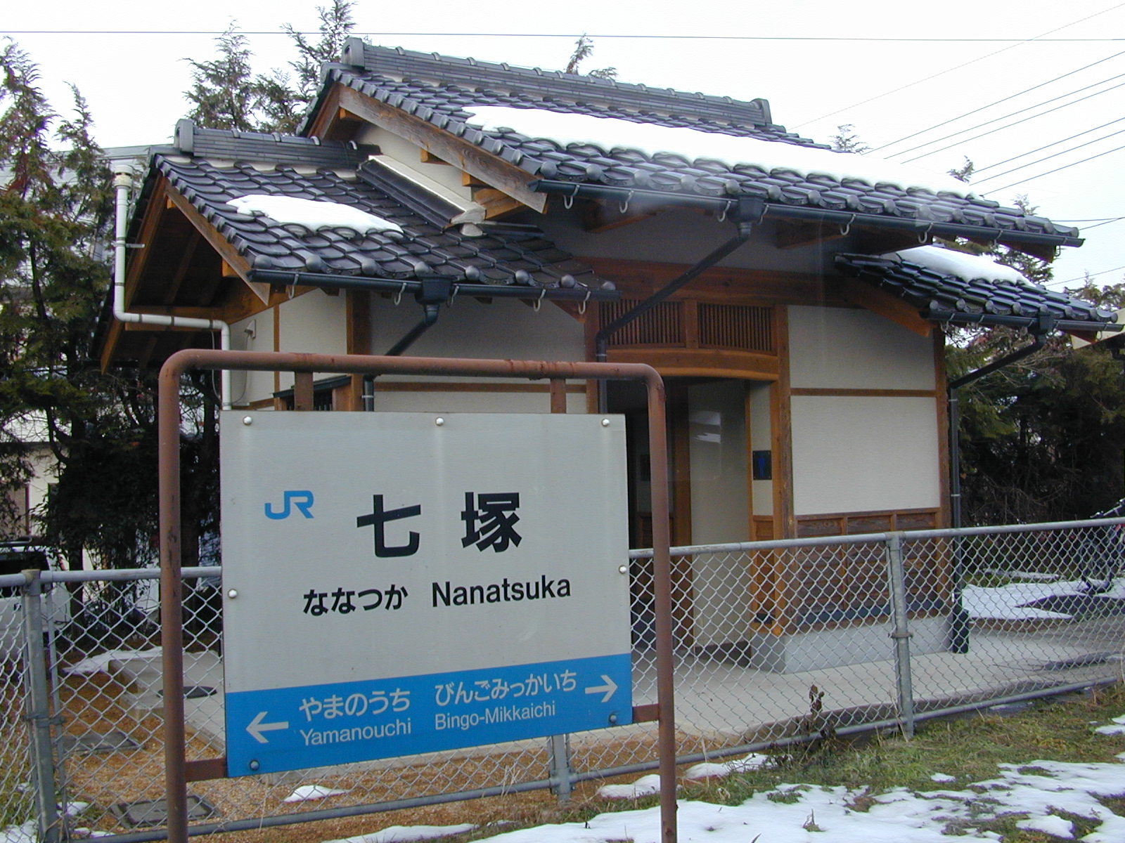 나나쓰카역은 일본 히로시마현 쇼바라시에 있는 서일본 여객철도 게이비선의 철도역이다. 상대식 승강장 2면 1선의 지상역으로, 미요시 철도부 관할의 무인역이다. 1923년 게이비 철도 개업과 함께 영업을 시작했으며, 1972년 무인역이 되었다. 2019년에는 하루 평균 4명의 승객이 이용했다. 역 주변에는 국영 히호쿠 언덕 공원과 국도 183호선 등이 있다.