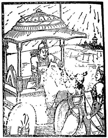그러나 판다바의 비마는 항복을 거부하고 불화살을 쏘며 저항했다. 나라야나 무기는 비마에게 집중적으로 쏟아졌지만, 크리슈나와 그의 형제들이 비마를 제지했기 때문에 그는 죽지 않았다.[6][7]